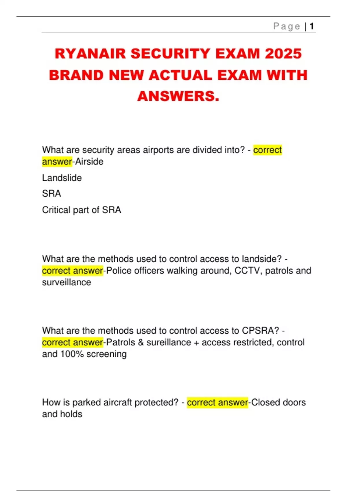RYANAIR SECURITY EXAM 2025