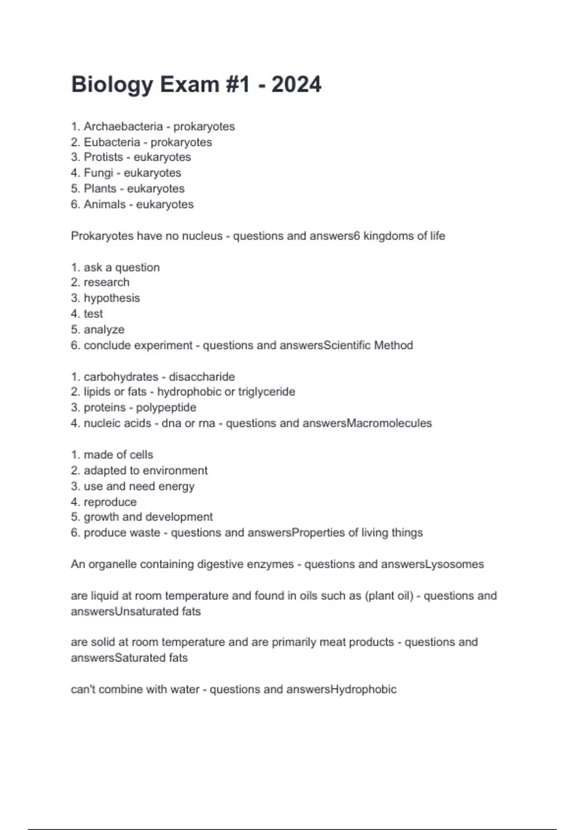 Biology Exam -1 - 2024 questions and answers