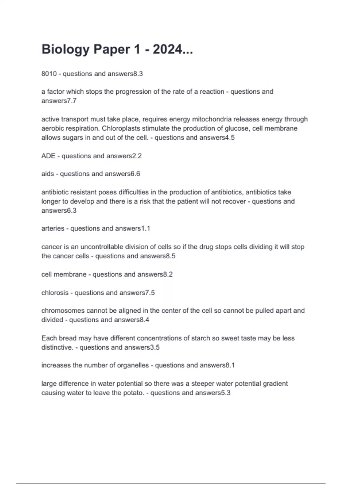 Biology Paper 1 - 2024... questions and answers