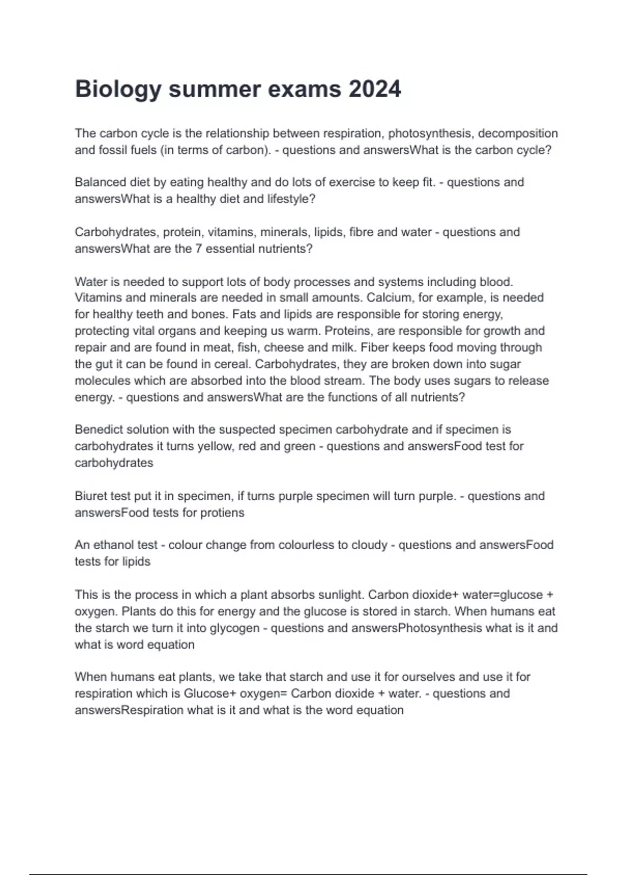 respiration which is Glucose+ oxygen= Carbon dioxide + water. - questions and