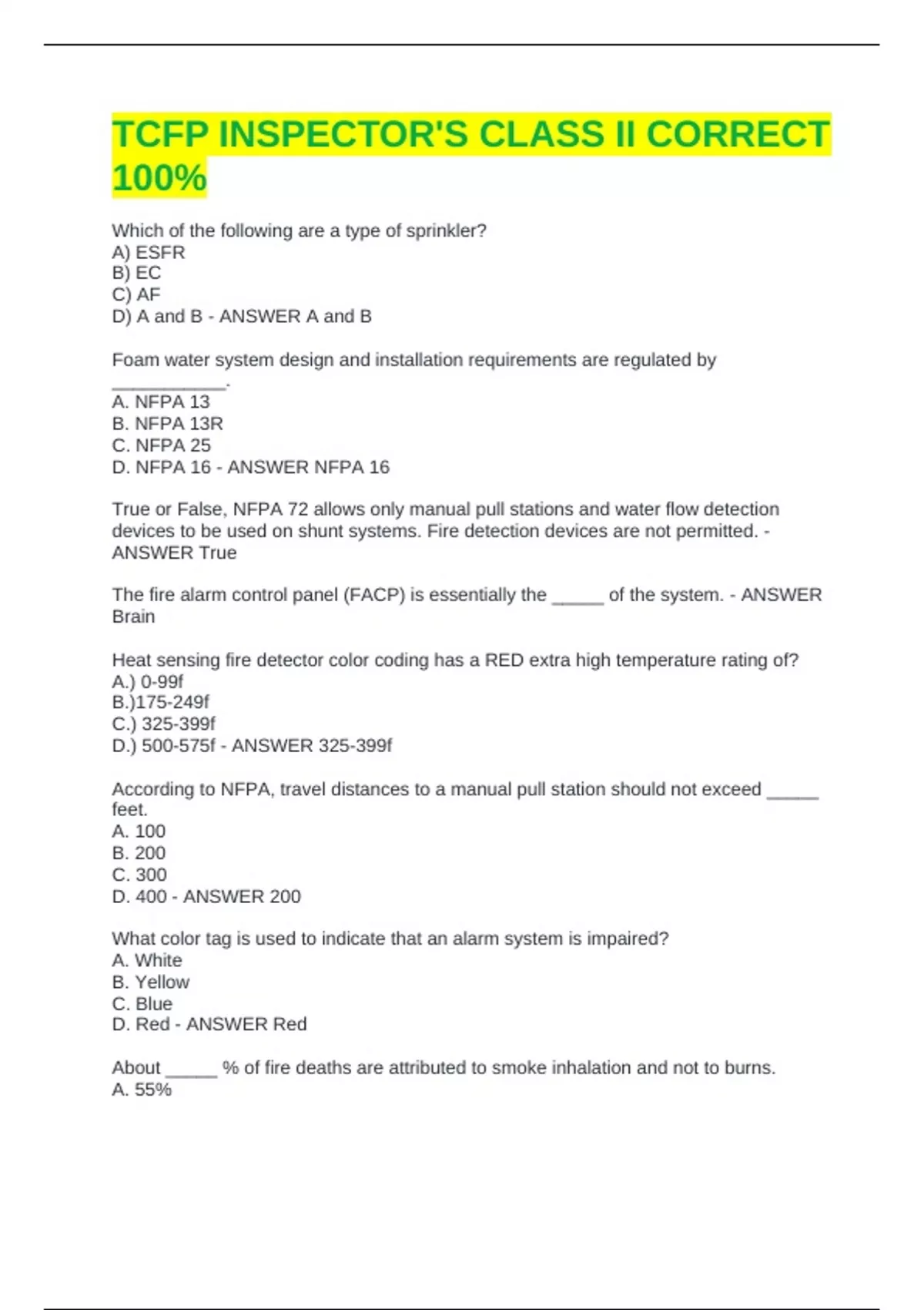 TCFP INSPECTOR'S CLASS II CORRECT 100%