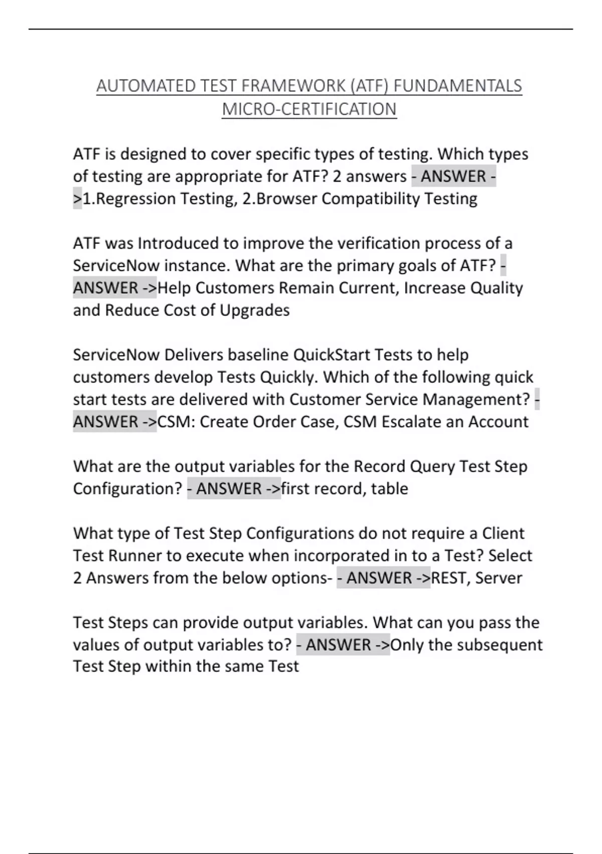 ServiceNow instance. What are the primary goals of ATF? -