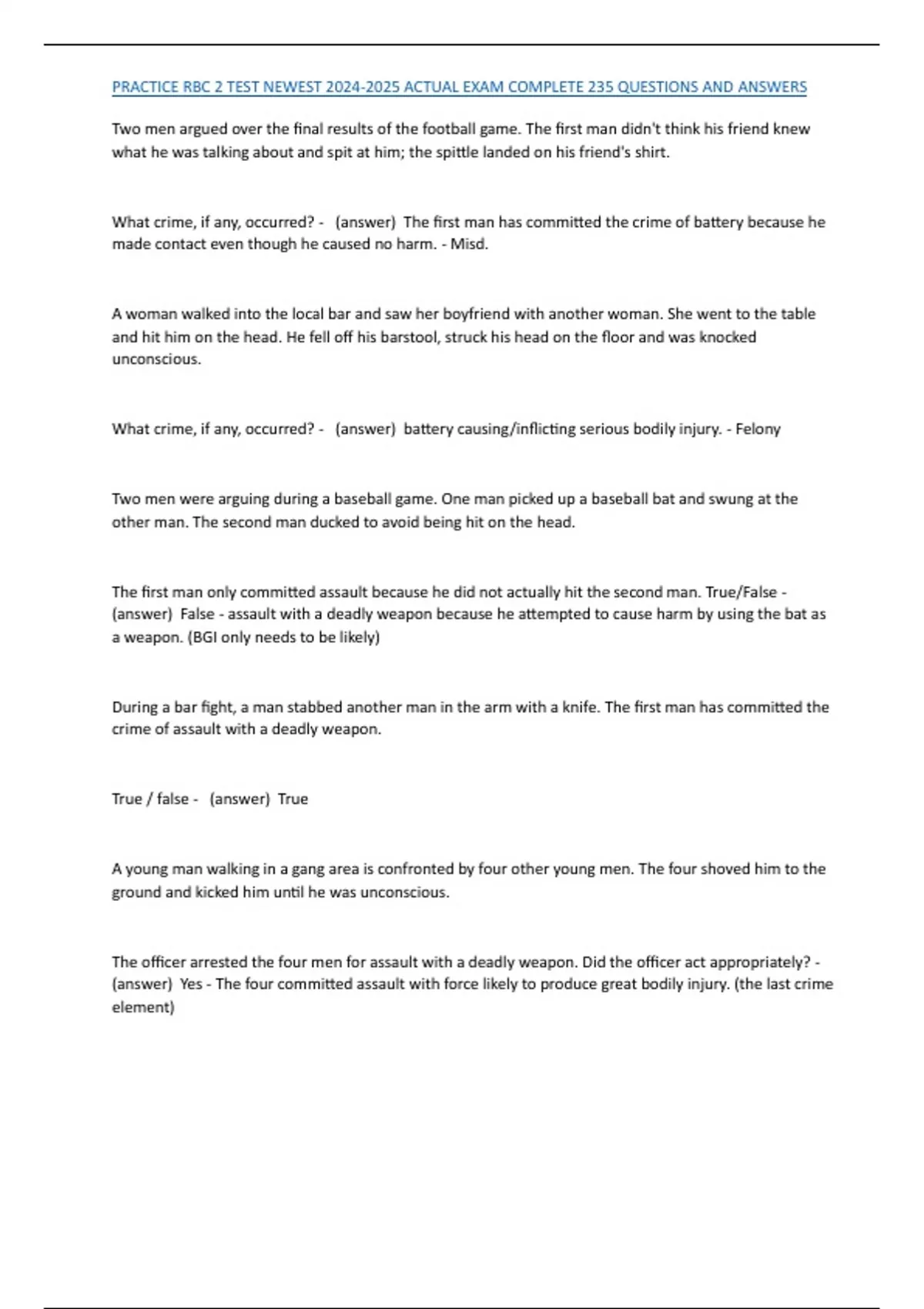 PRACTICE RBC 2 TEST NEWEST 2024-2025 ACTUAL EXAM COMPLETE 235 QUESTIONS AND ANSWERS
