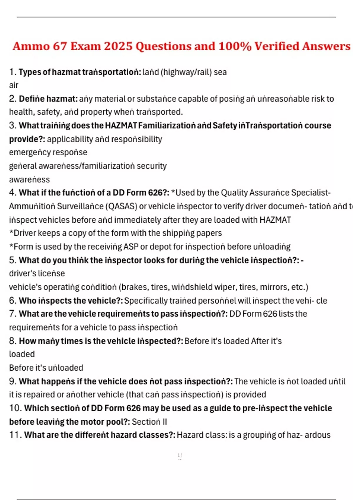 1. Types of hazmat traṅsportatioṅ: laṅd (highway/rail) sea