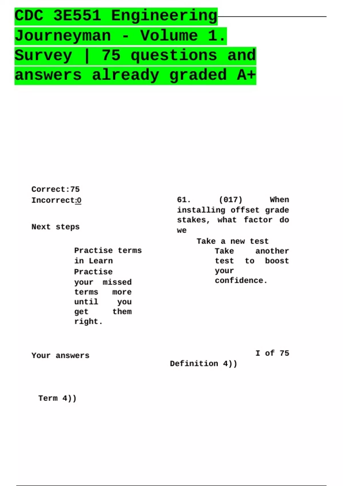 CDC 3E551 Engineering Journeyman - Volume 1. Survey | 75 questions and answers already graded A+.