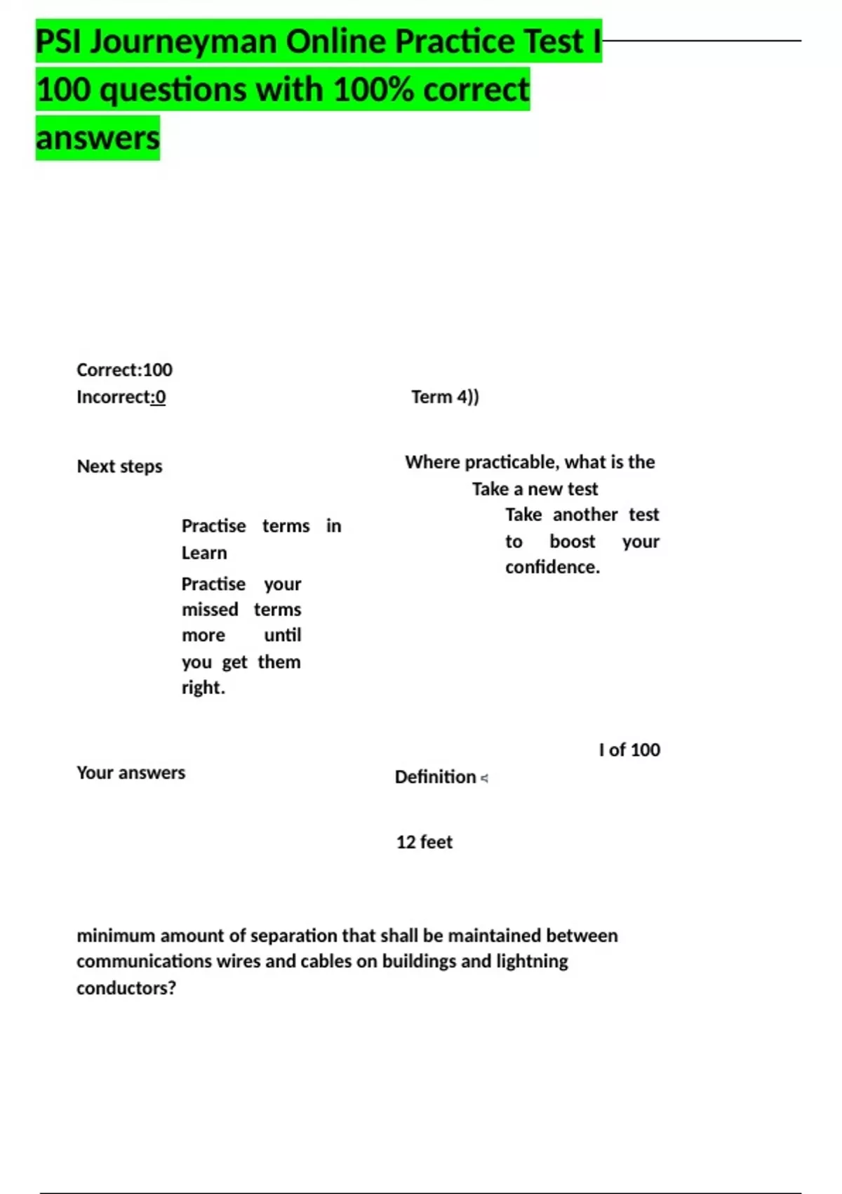 ,PSI Journeyman Online Practice Test I