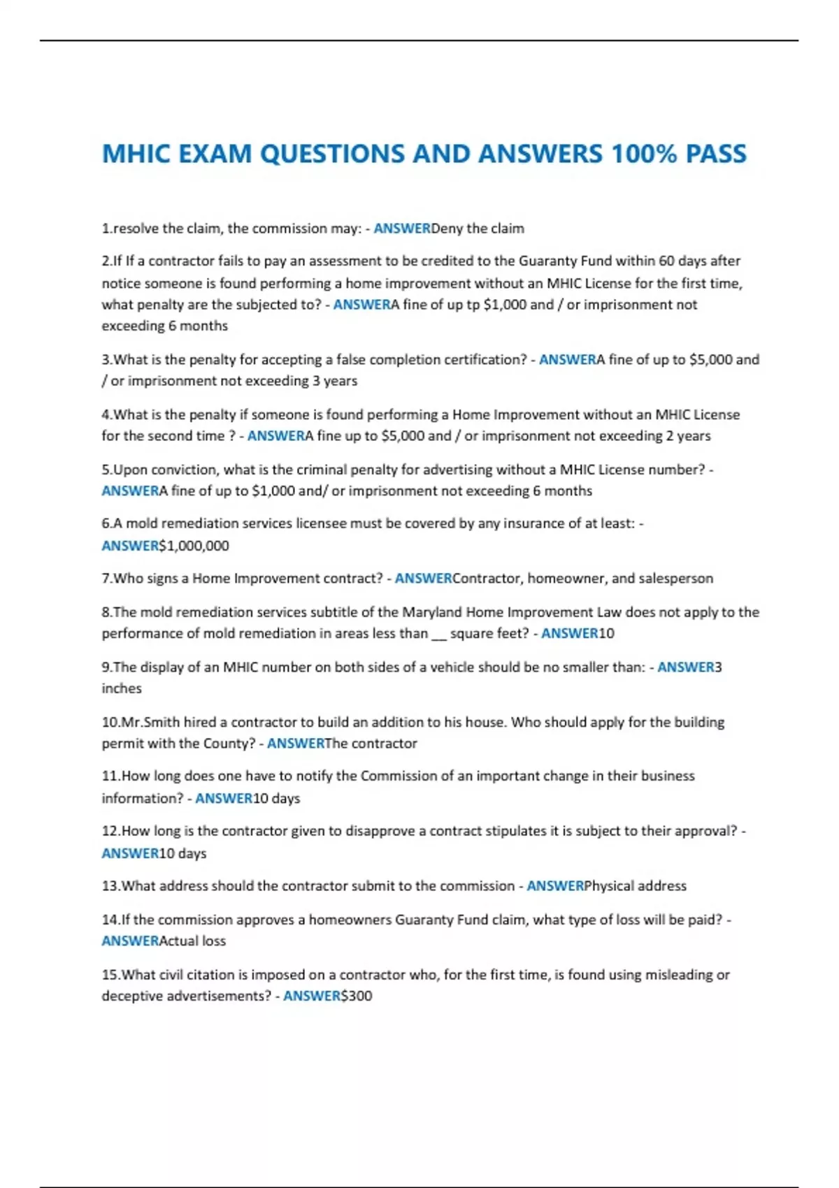 3.What is the penalty for accepting a false completion certification? - ANSWERA fine of up to $5,000 and