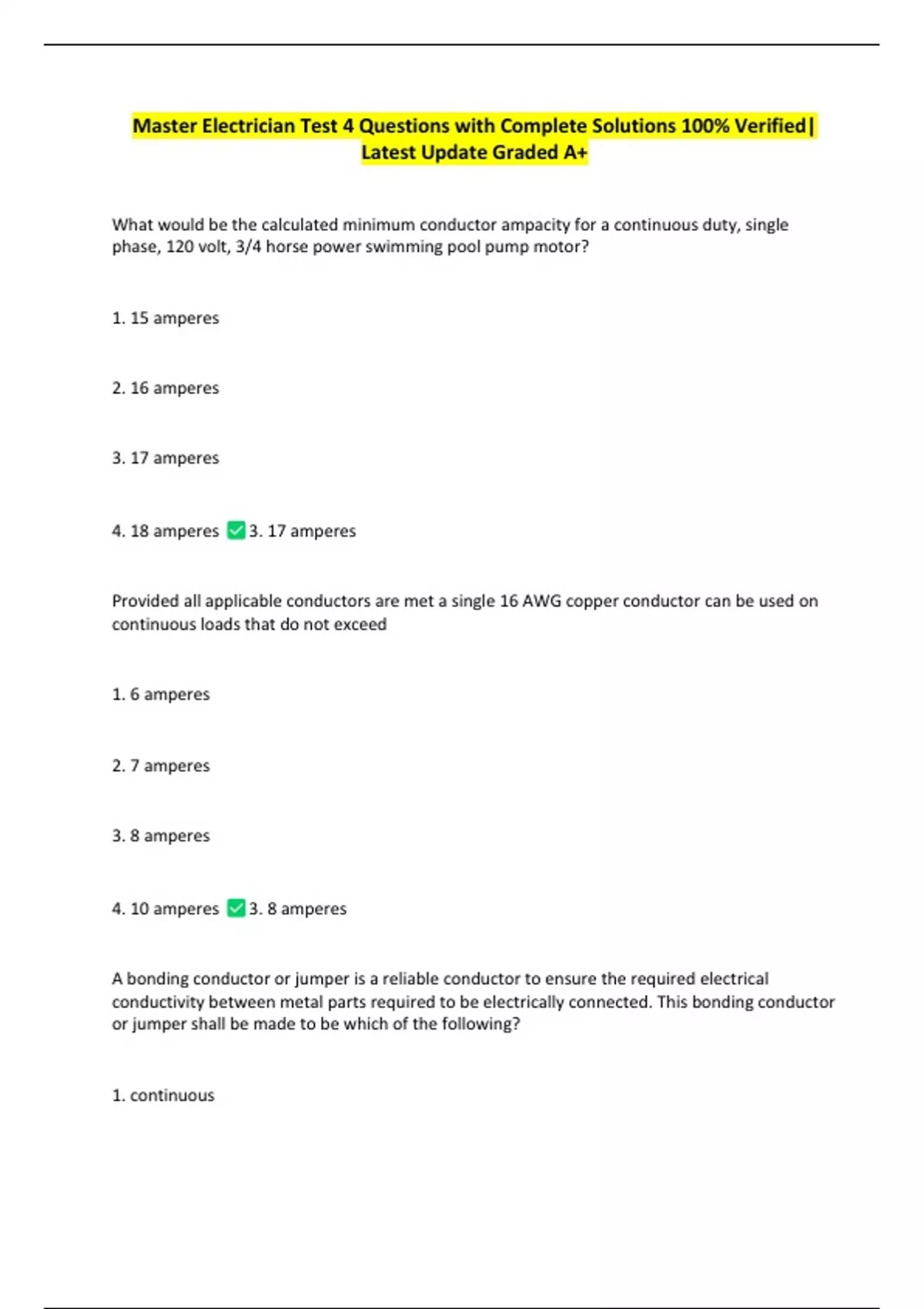 4. 18 amperes 3. 17 amperes