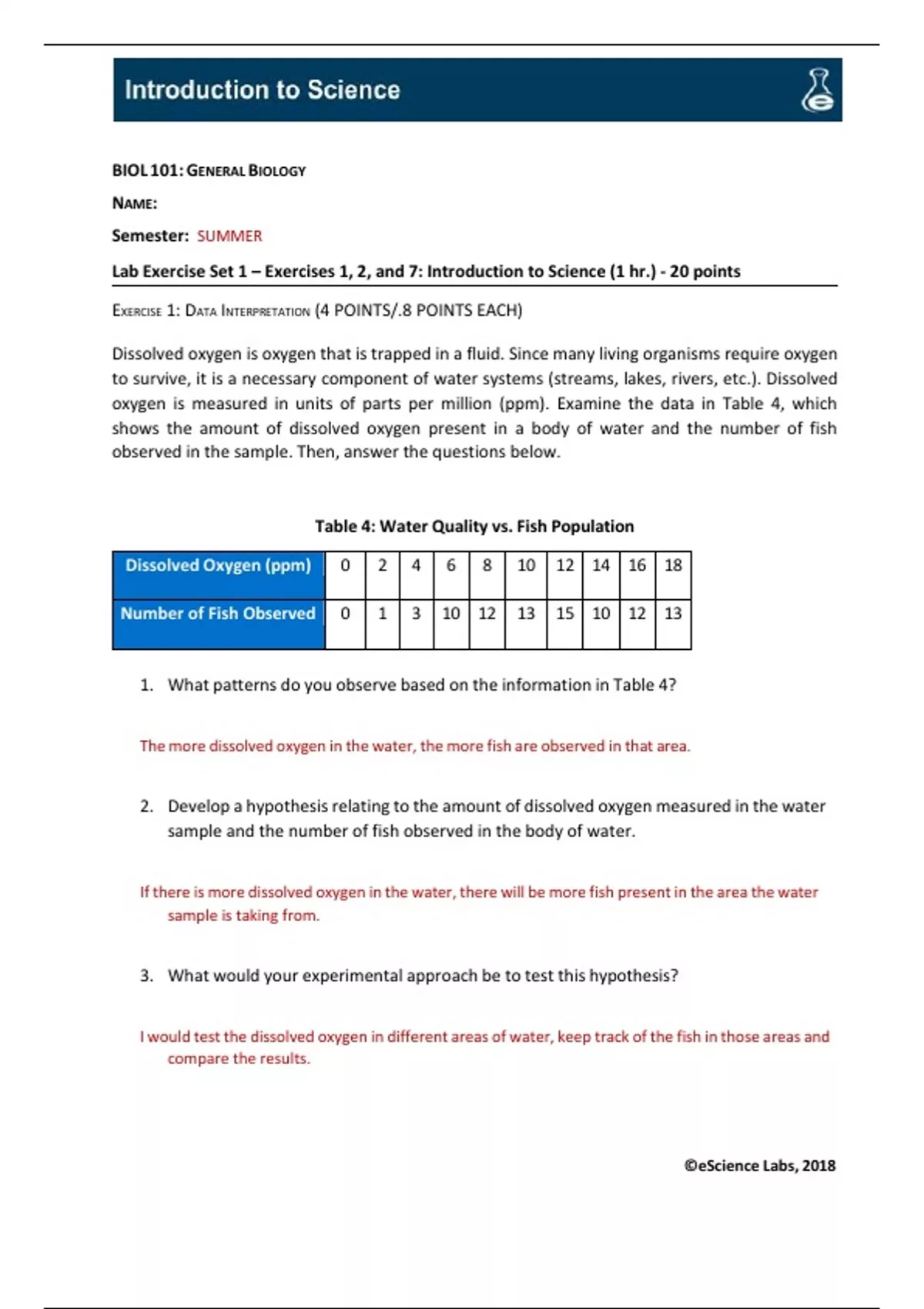 Lab Exercise Set 1 – Exercises 1, 2, and 7: Introduction to Science (1 hr.) - 20 points