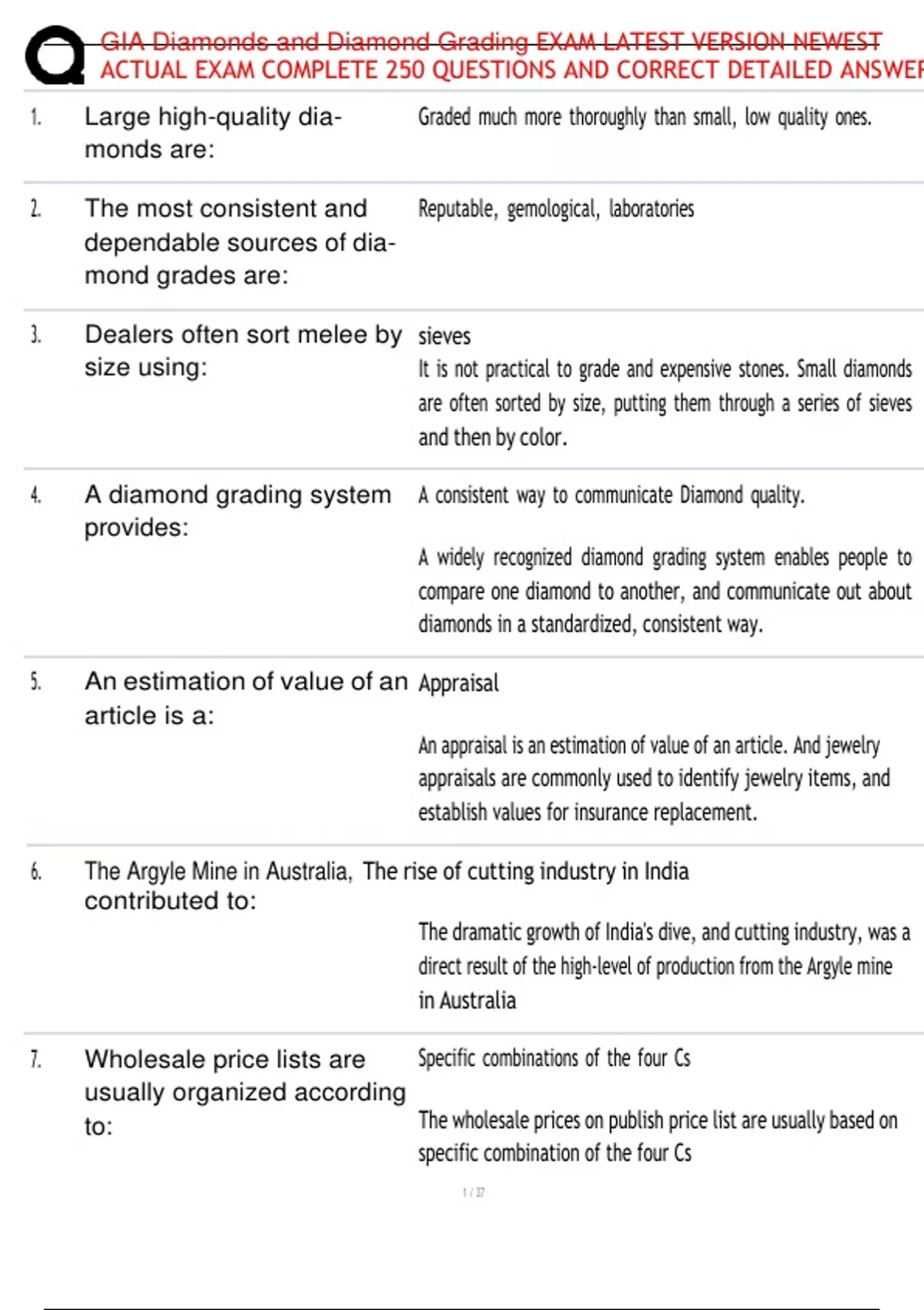 GIA Diamonds and Diamond Grading EXAM LATEST VERSION NEWEST