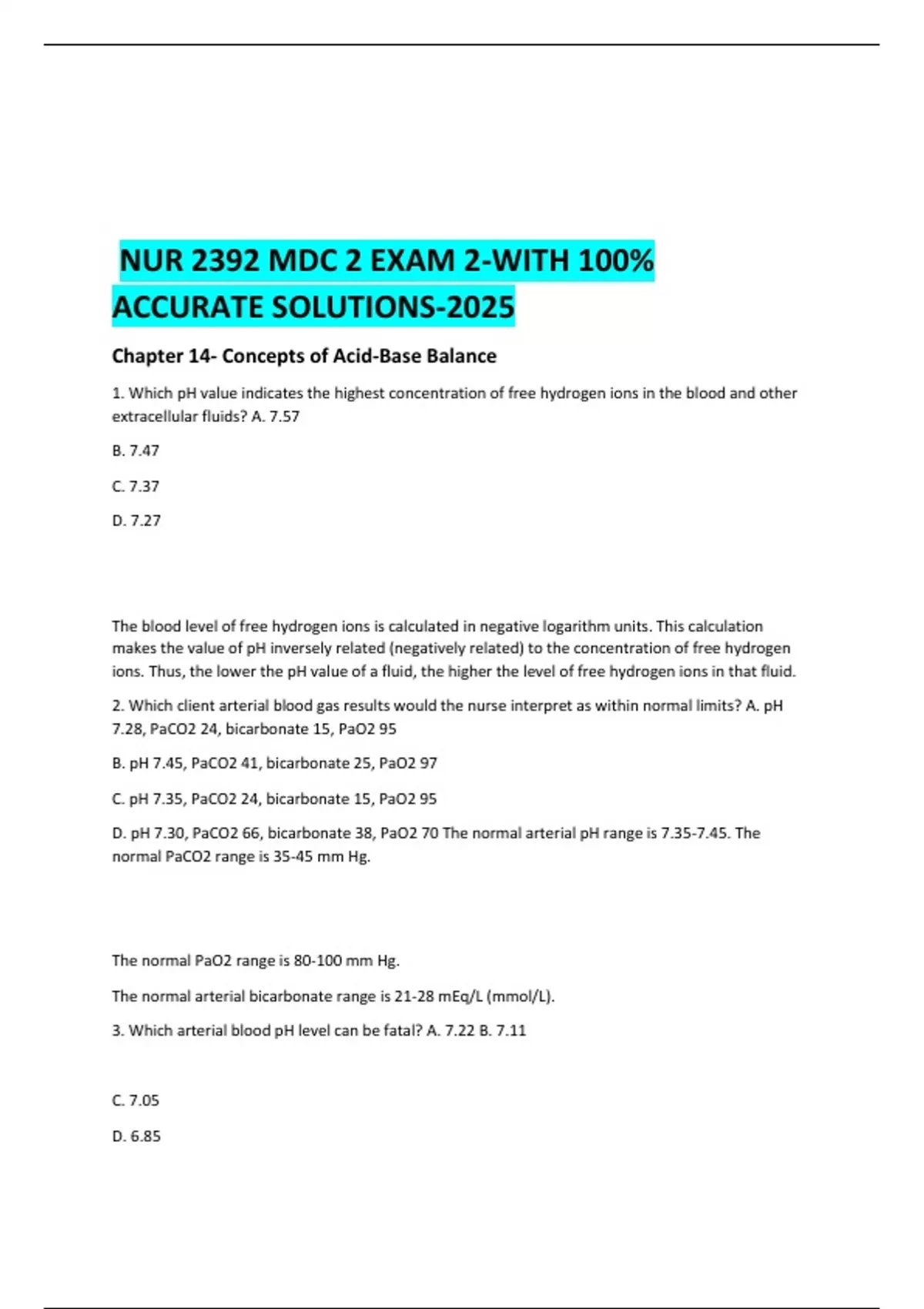 2. Which client arterial blood gas results would the nurse interpret as within normal limits? A. pH