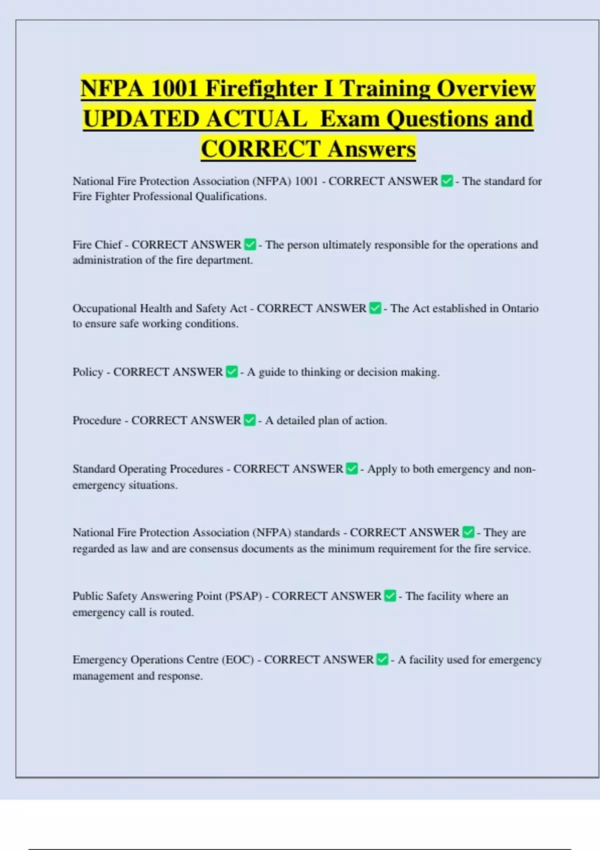 National Fire Protection Association (NFPA) 1001 - CORRECT ANSWER - The standard for