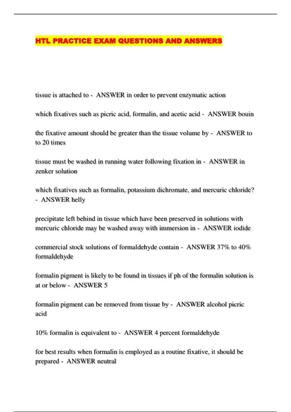 HTL PRACTICE EXAM QUESTIONS AND ANSWERS