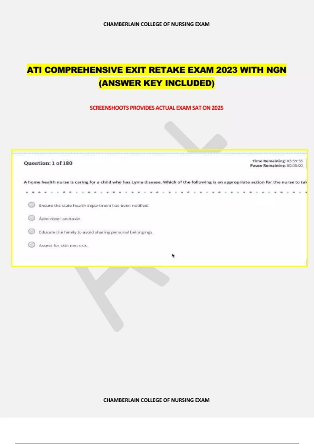 , CHAMBERLAIN COLLEGE OF NURSING EXAM