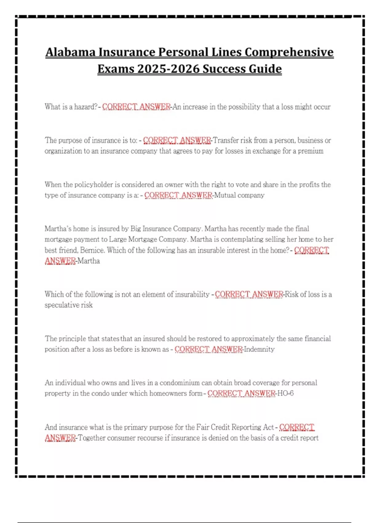 Alabama Insurance Personal Lines Comprehensive Exams Success Guide