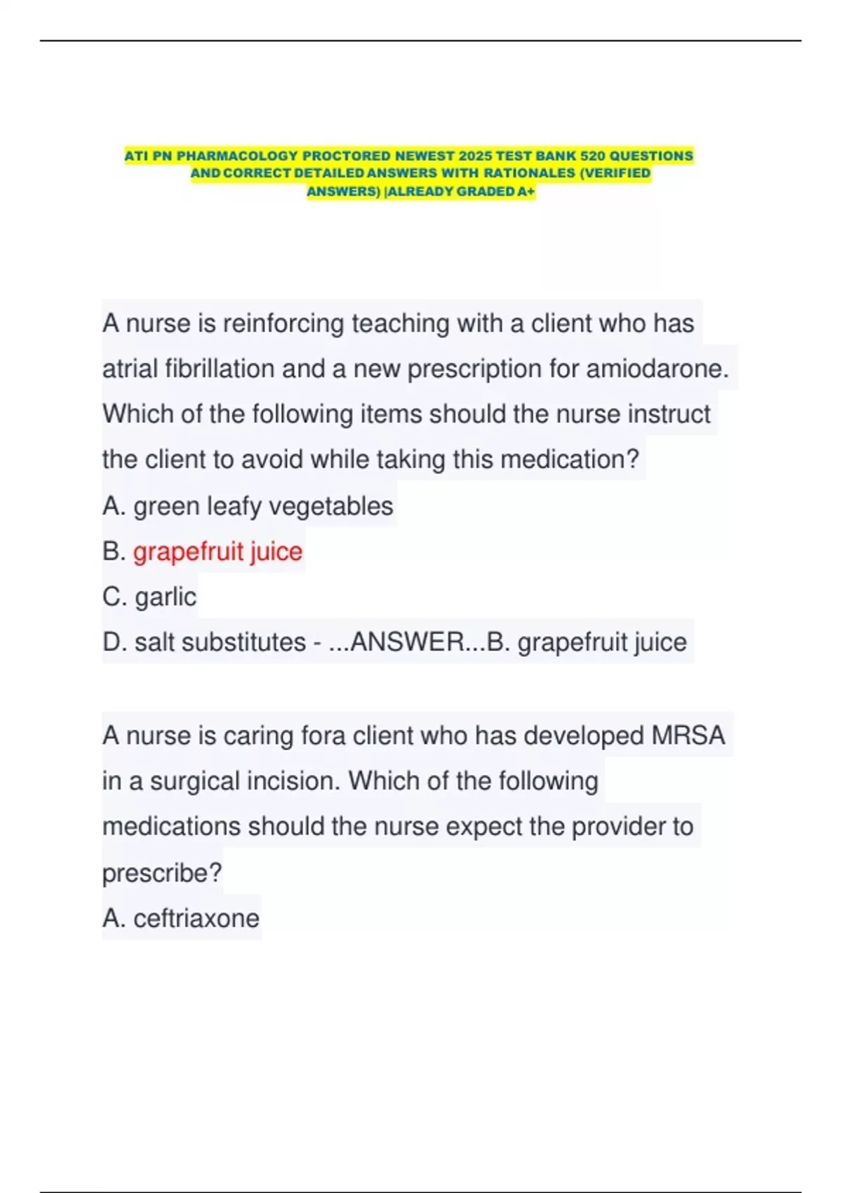 ATI PN PHARMACOLOGY PROCTORED NEWEST 2025 TEST BANK 520 QUESTIONS