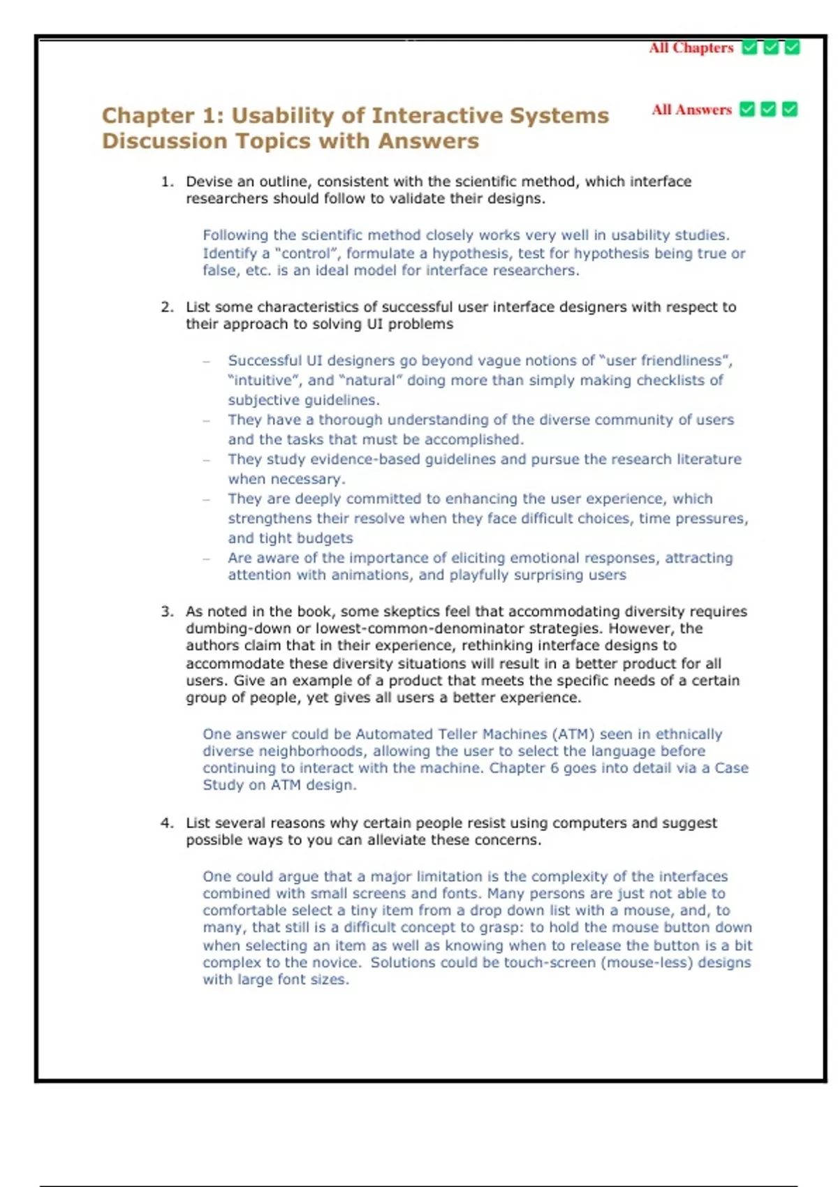 Chapter 1: Usability of Interactive Systems All Answers
