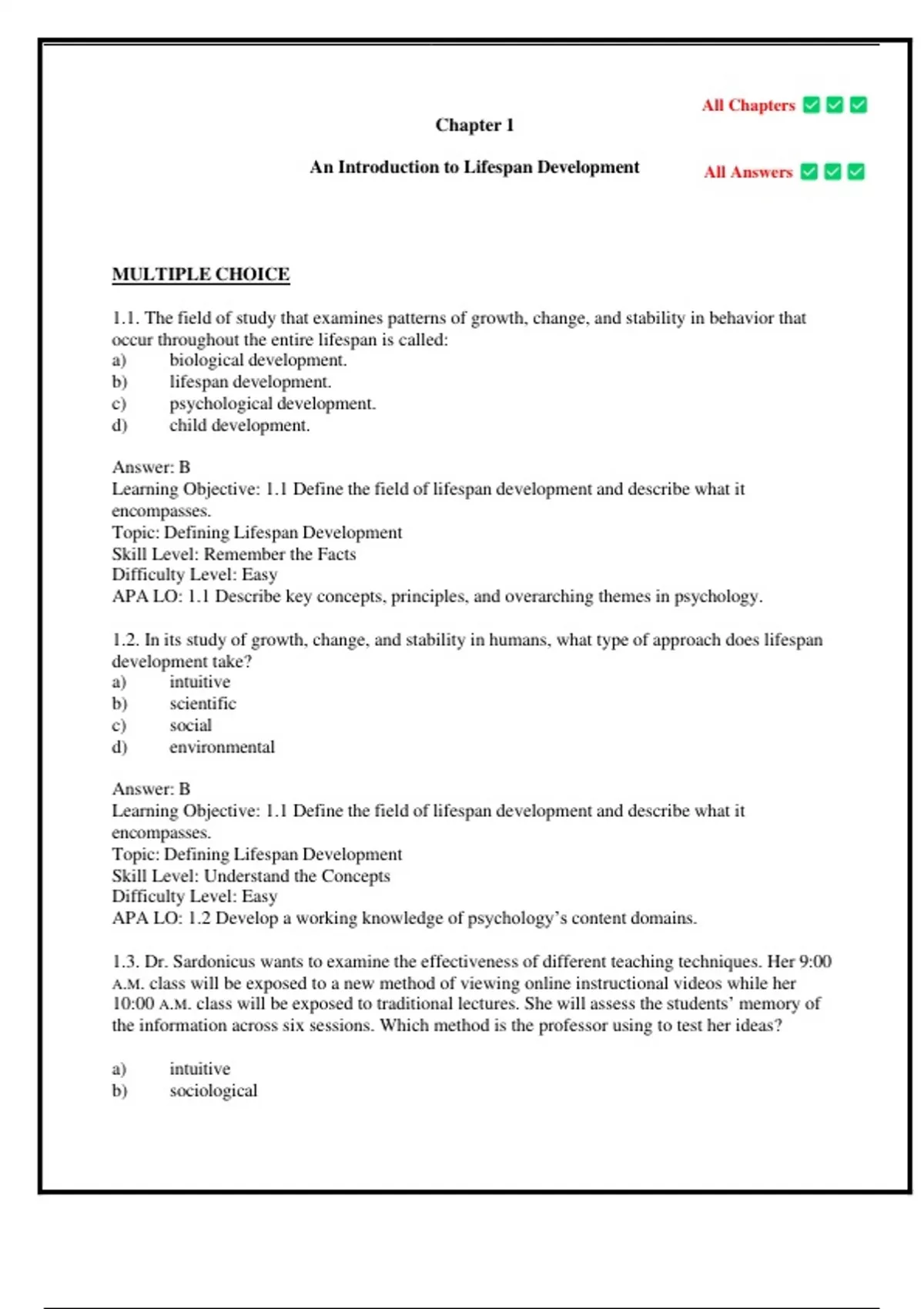 Test Bank for Development Across the Life Span, 10th edition by Robert S. Feldman | All Chapters