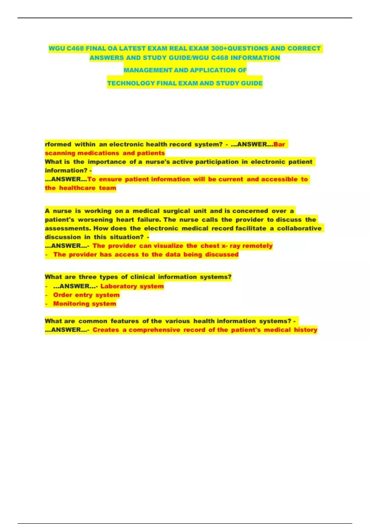 ANSWERS AND STUDY GUIDE/WGU C468 INFORMATION