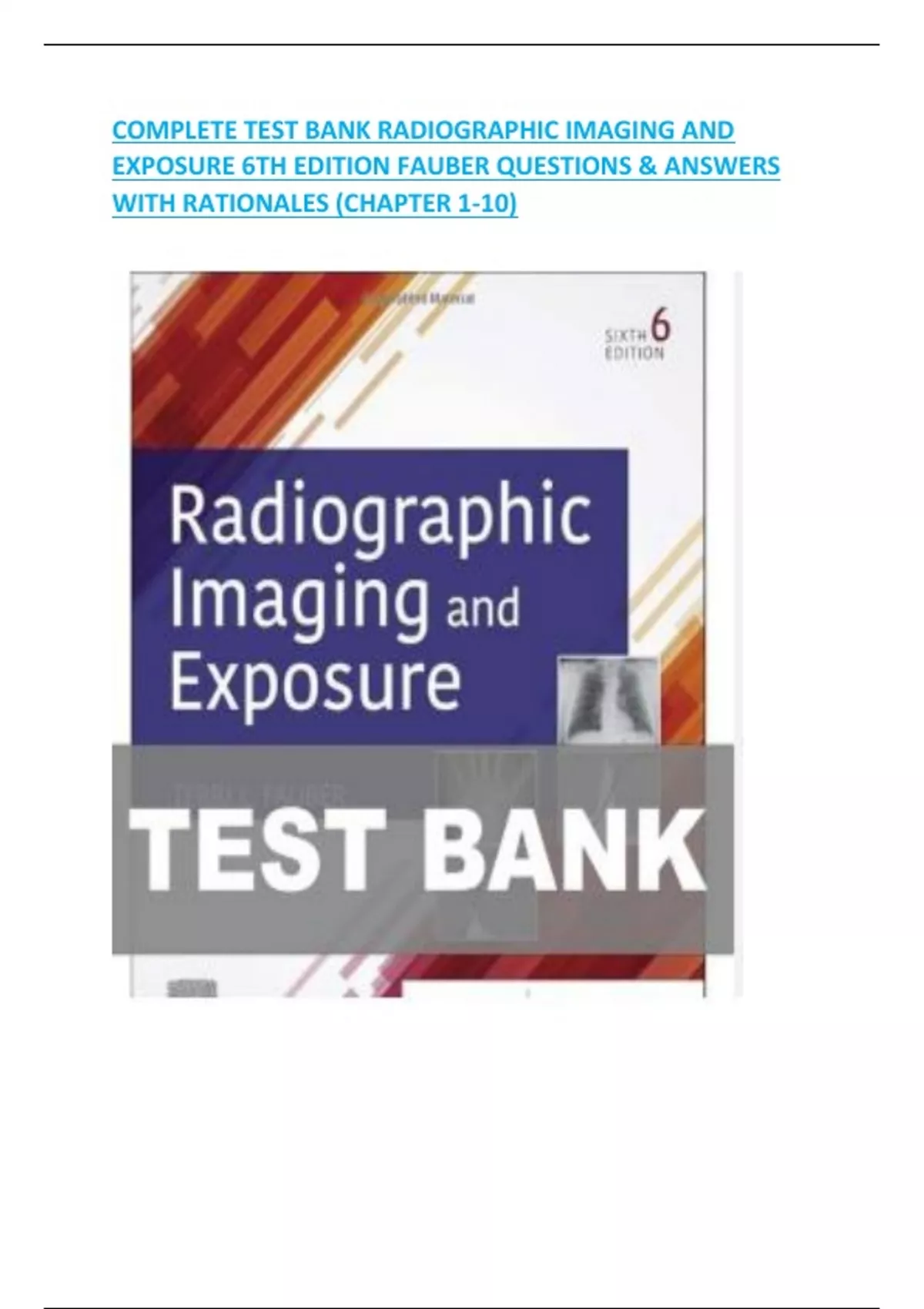 COMPLETE TEST BANK RADIOGRAPHIC IMAGING AND