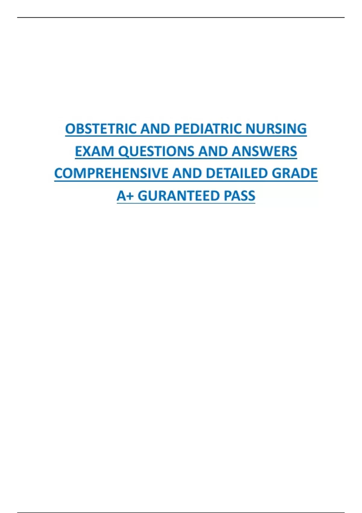 OBSTETRIC AND PEDIATRIC NURSING EXAM QUESTIONS AND ANSWERS COMPREHENSIVE AND DETAILED GRADE A+ GURANTEED PASS