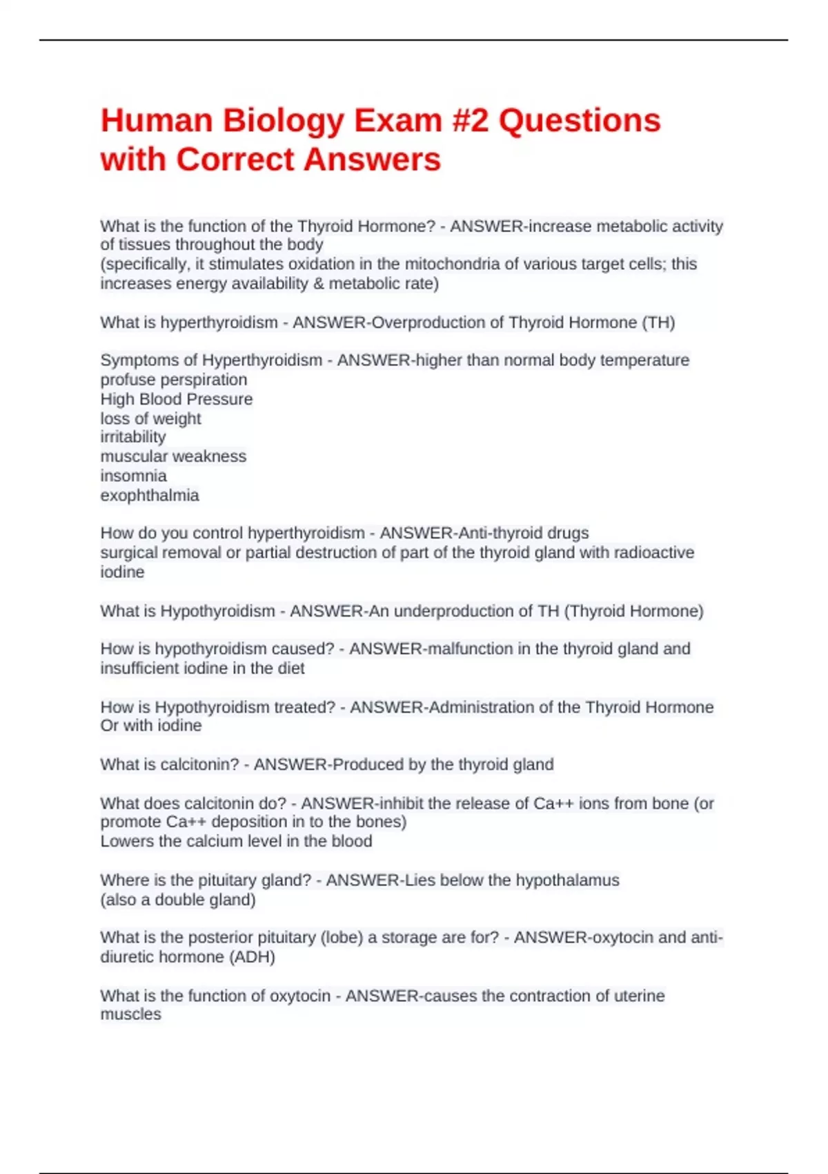 The Pituitary glad is also called - ANSWER-the "Master Gland"