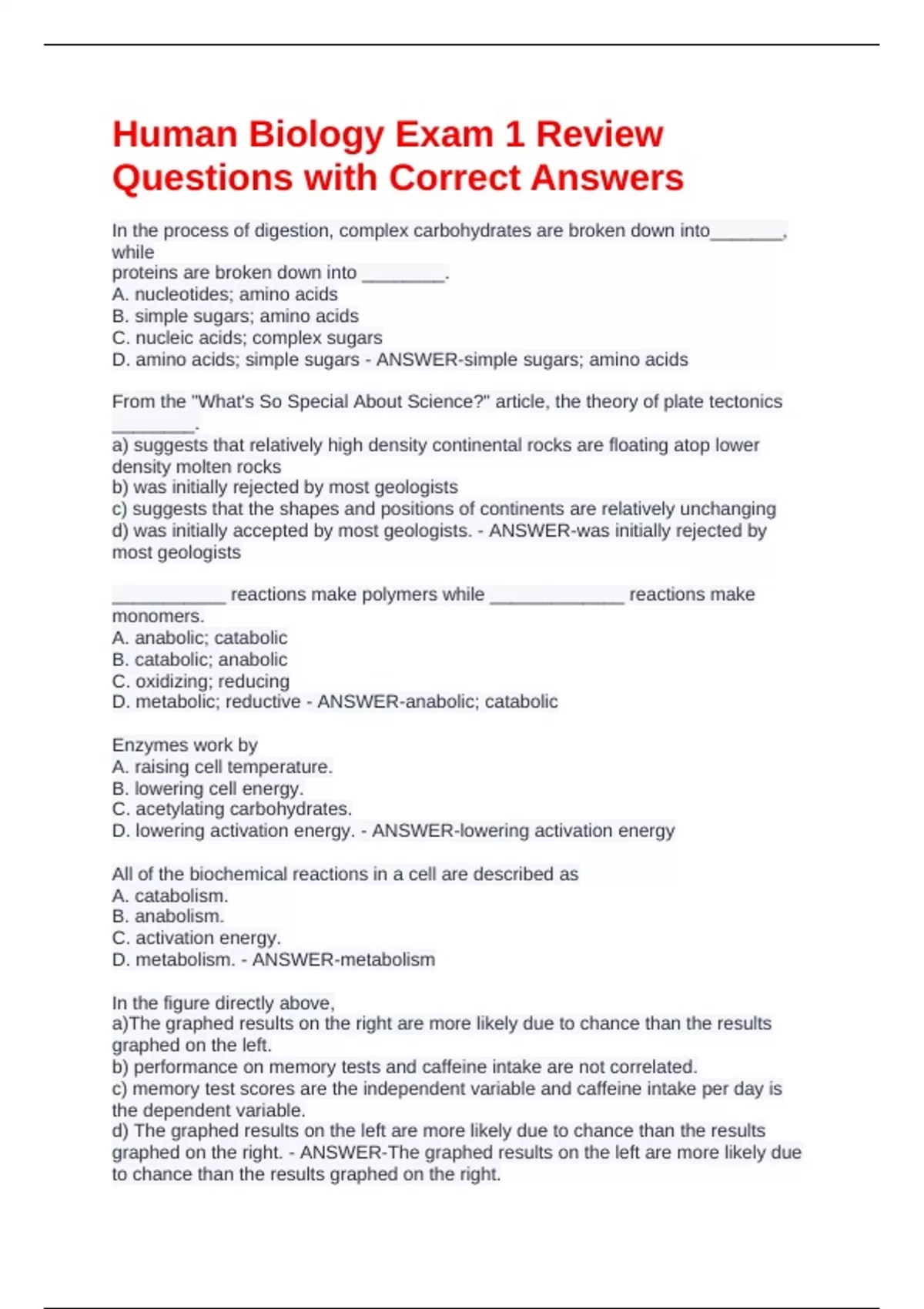 Human Biology Exam 1 Review