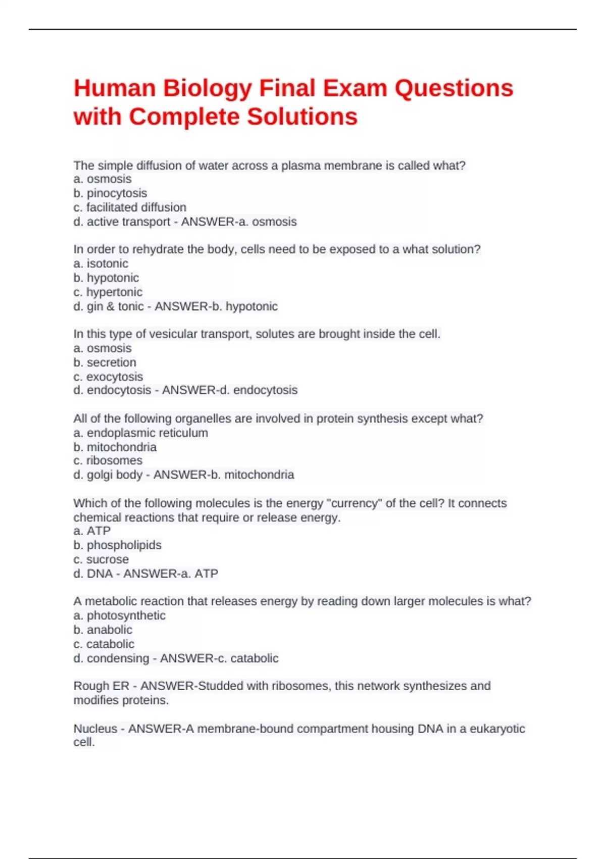 Human Biology Final Exam Questions