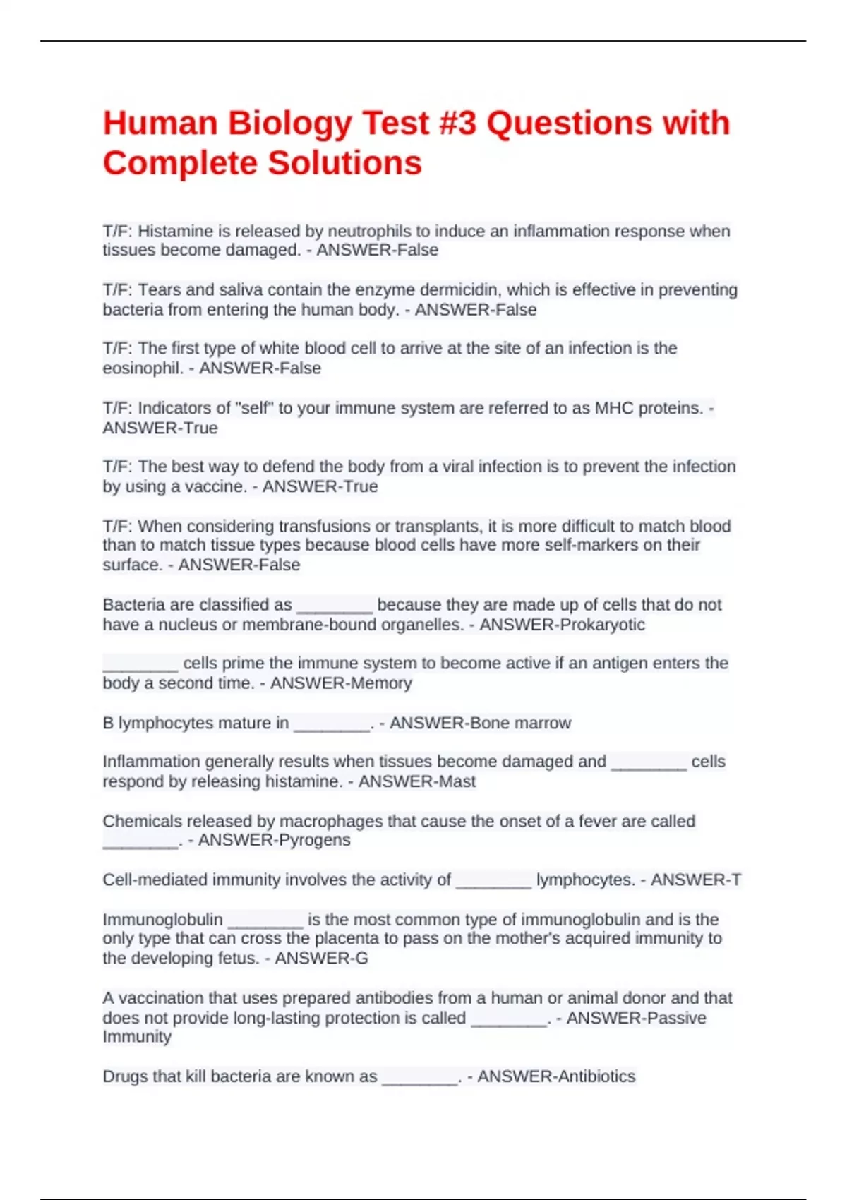 Human Biology Test #3 Questions with