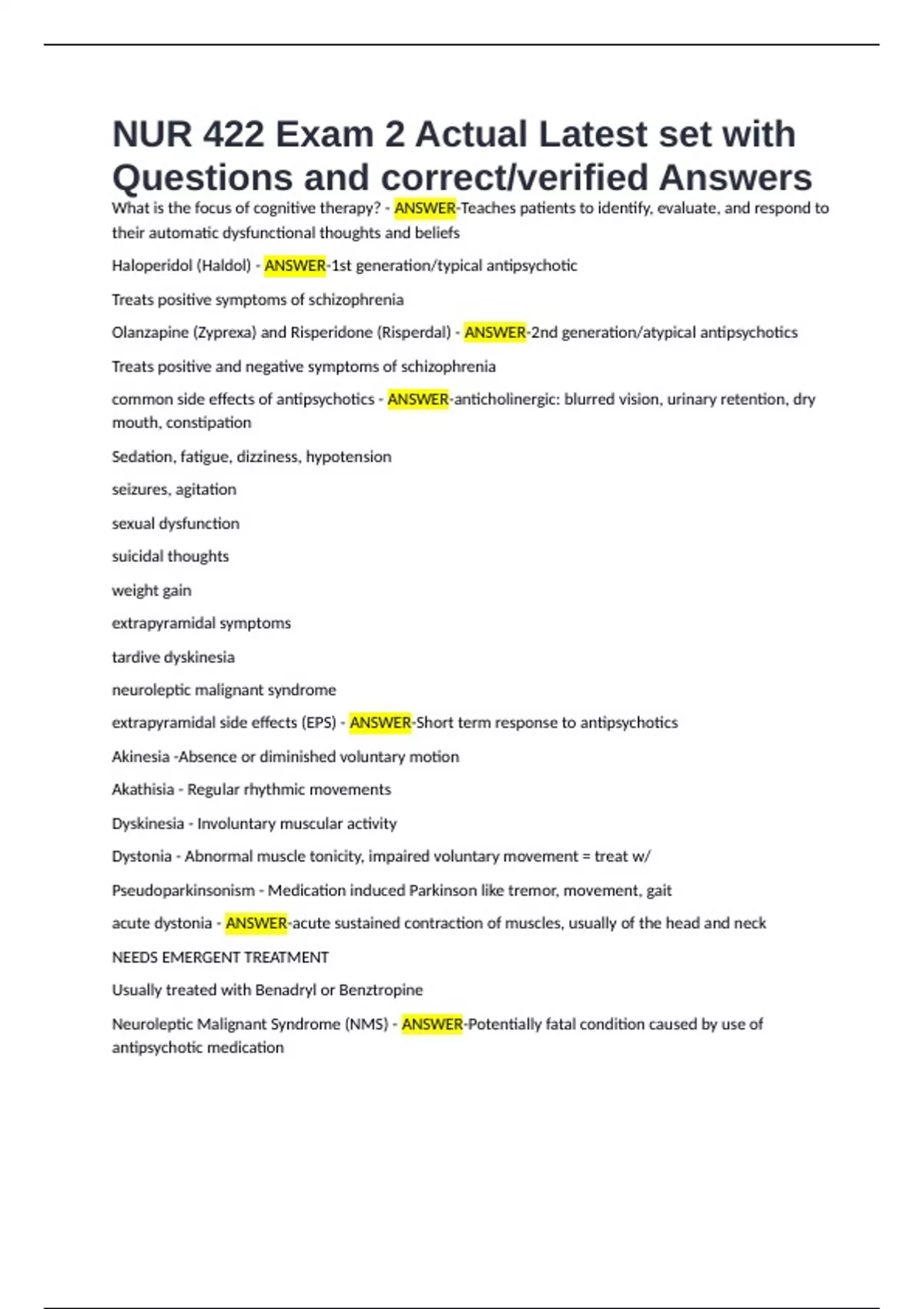 NUR 422 Exam 2 Actual Latest set with Questions and correct/verified Answers