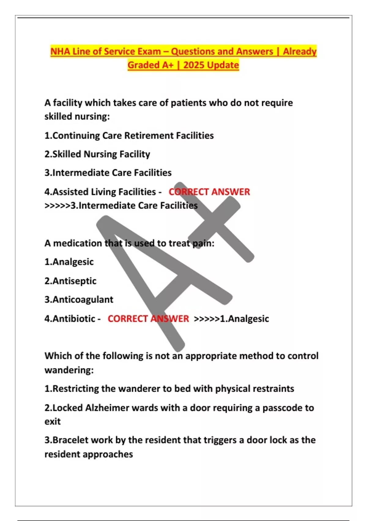 NHA Line of Service Exam – Questions and Answers | Already