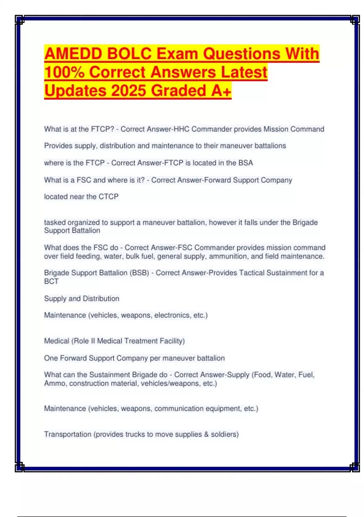 Brigade Support Battalion (BSB) - Correct Answer-Provides Tactical Sustainment for a