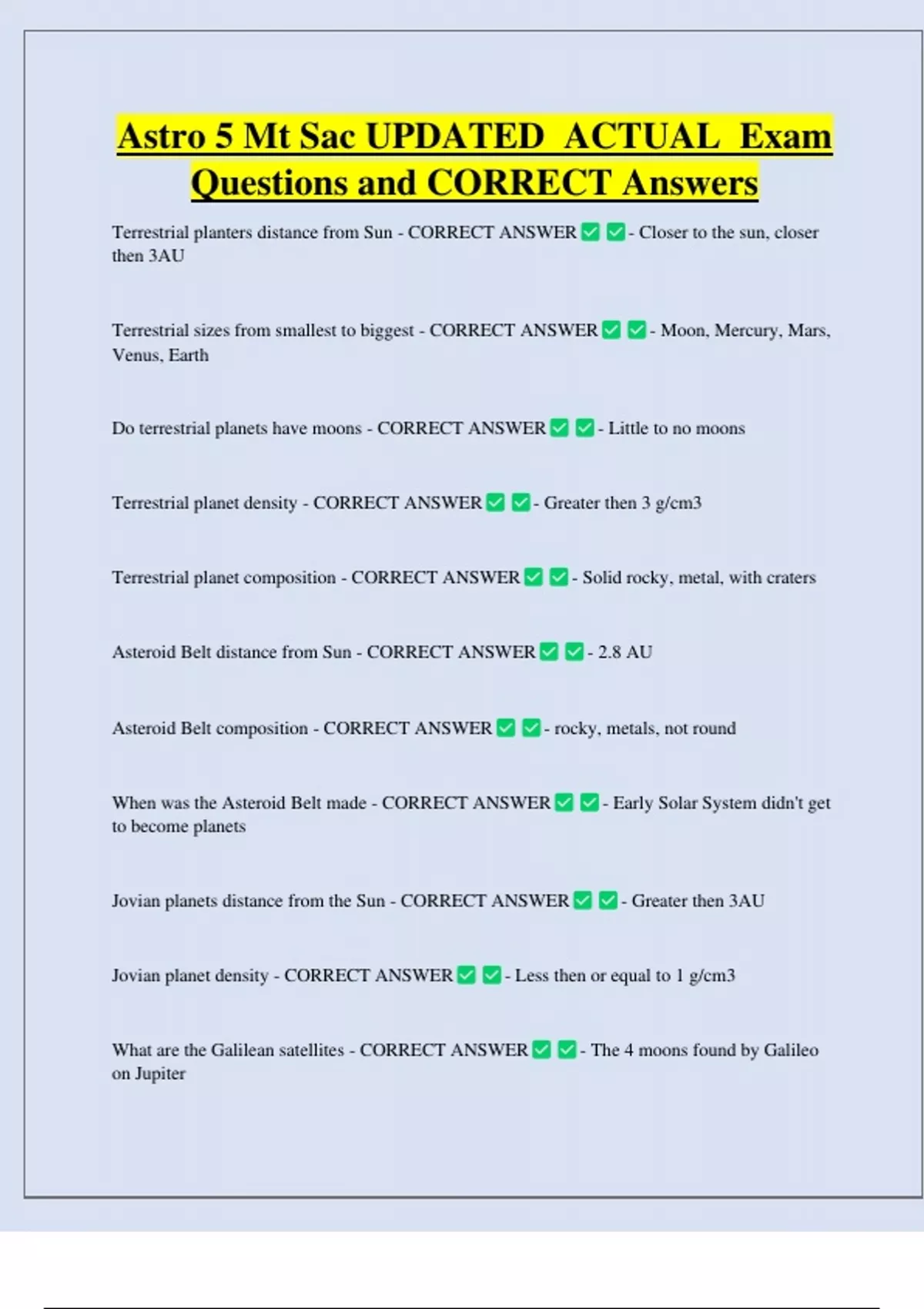 Questions and CORRECT Answers