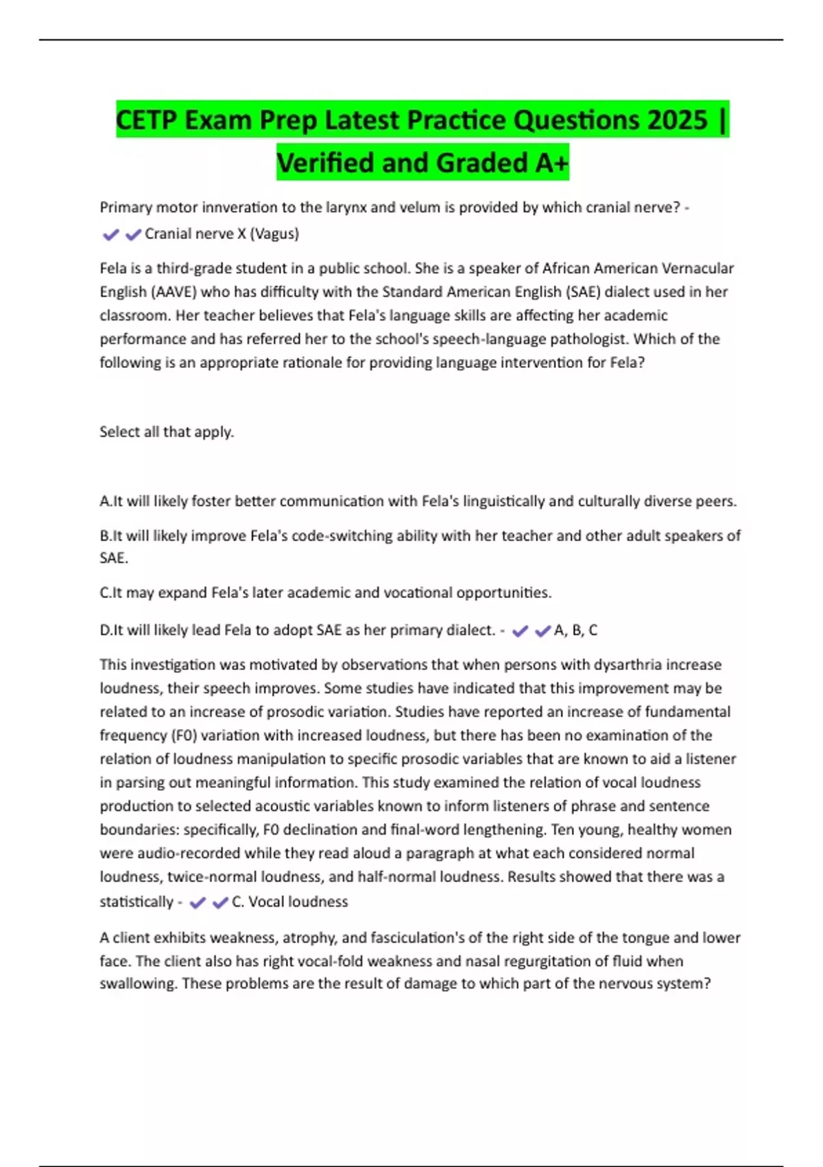 D.It will likely lead Fela to adopt SAE as her primary dialect. - A, B, C