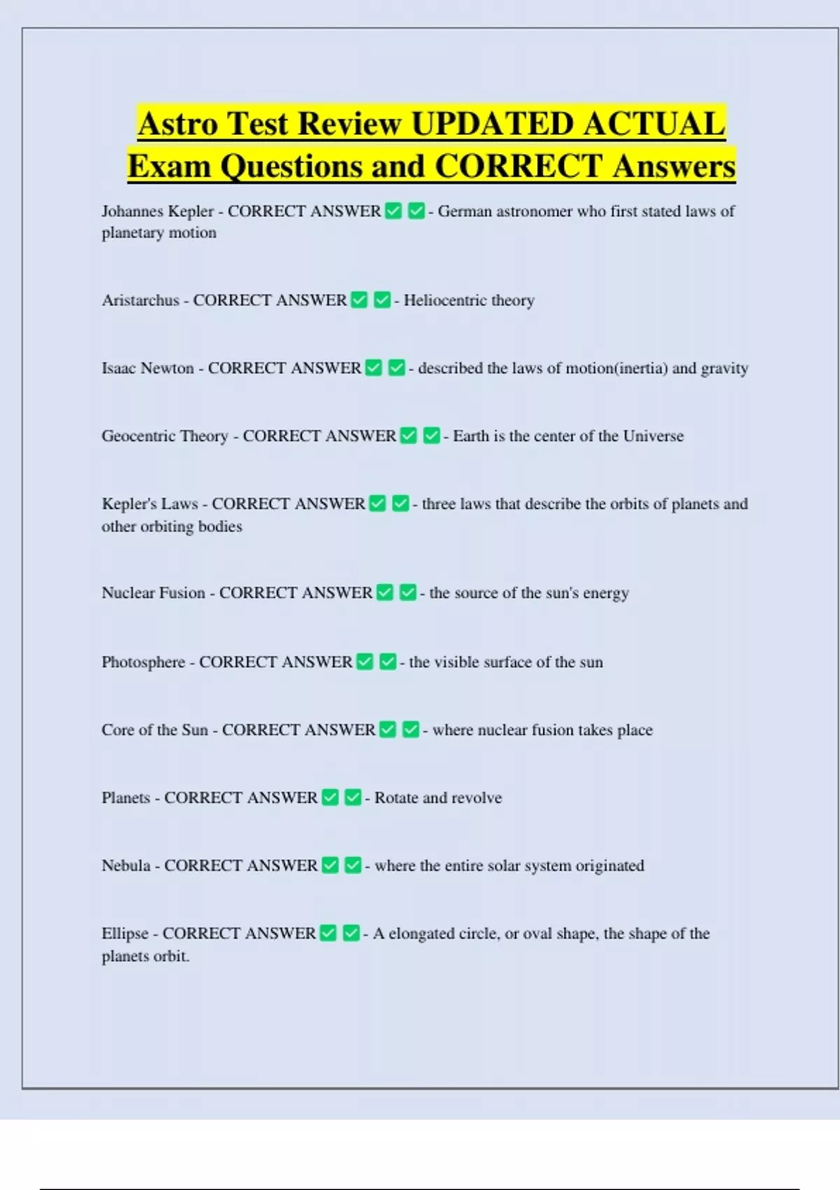 Astro Test Review UPDATED ACTUAL Exam Questions and CORRECT Answers