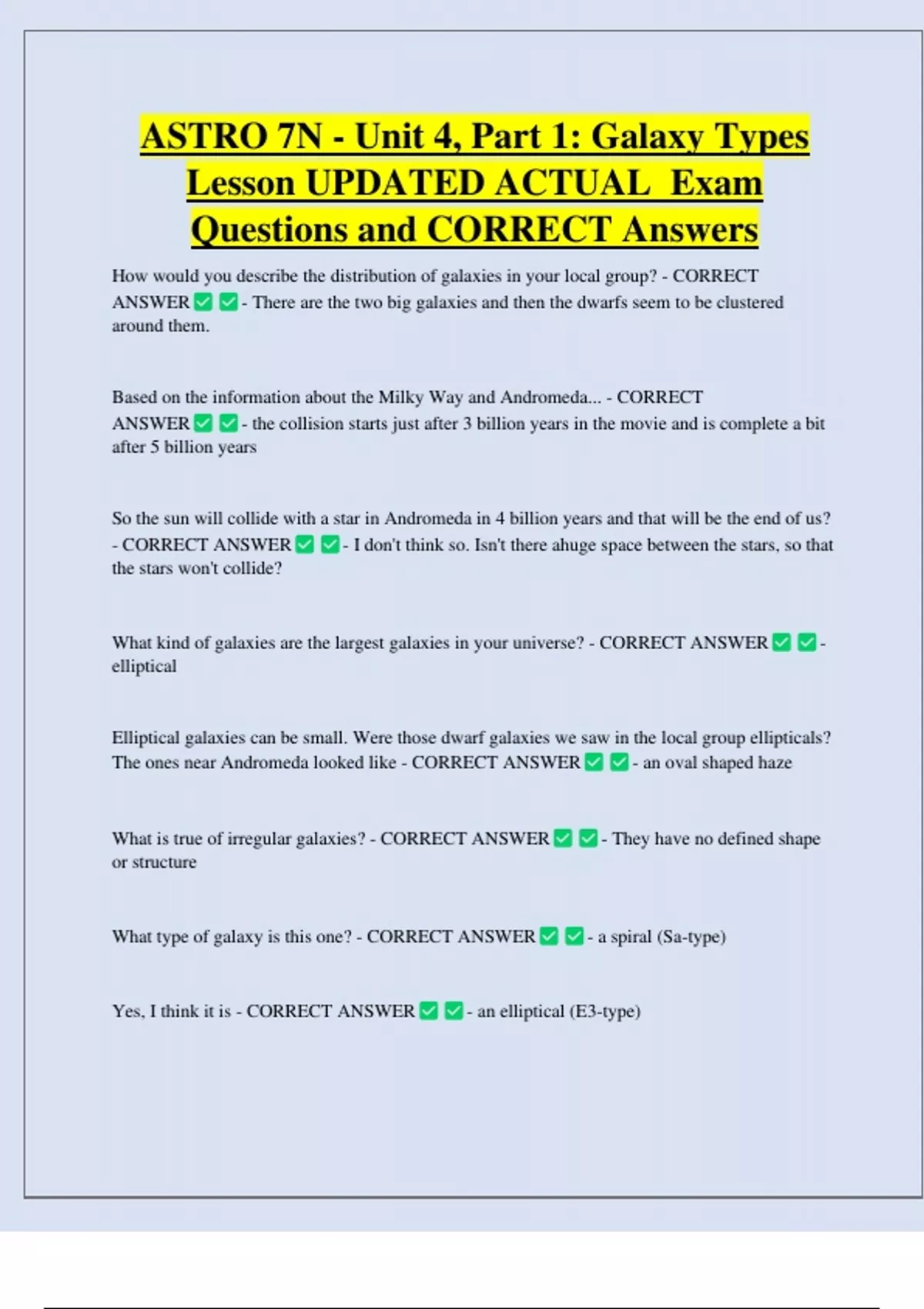 Questions and CORRECT Answers
