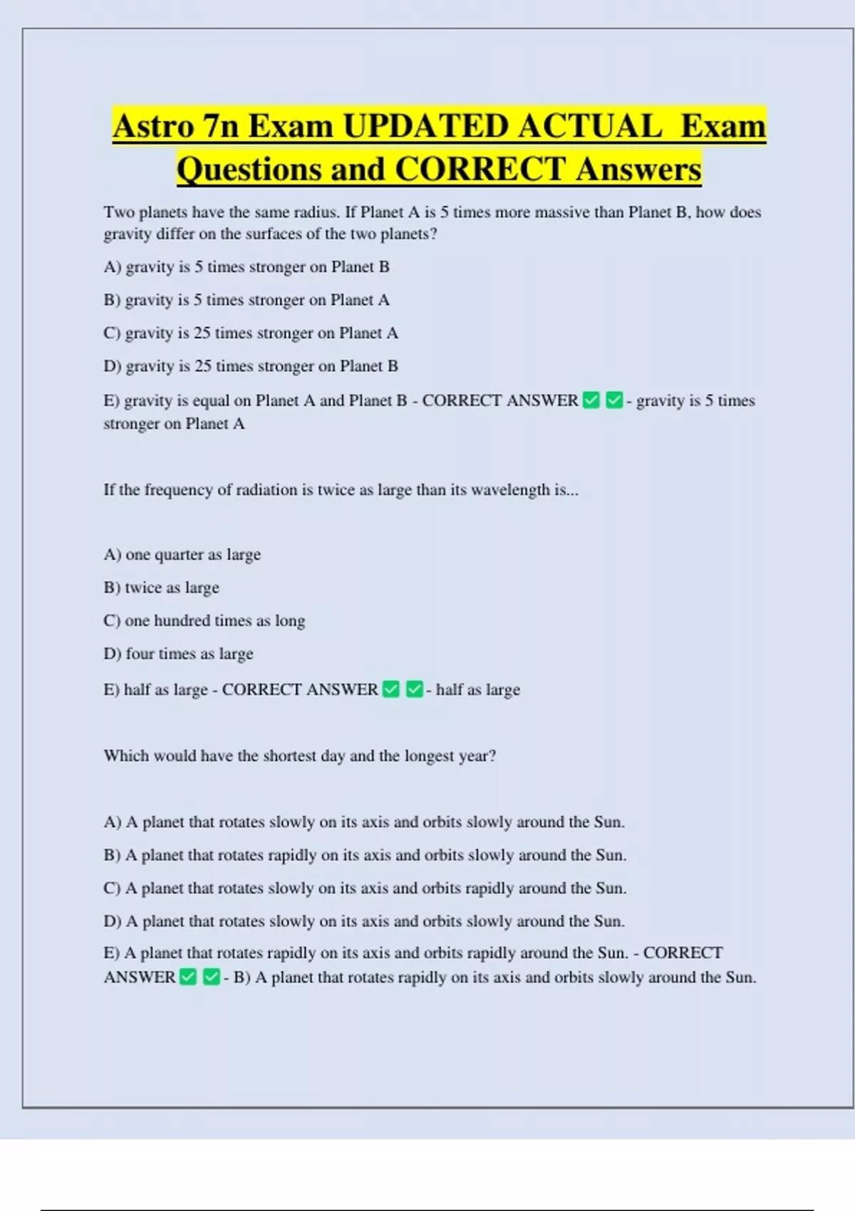 E) gravity is equal on Planet A and Planet B - CORRECT ANSWER - gravity is 5 times