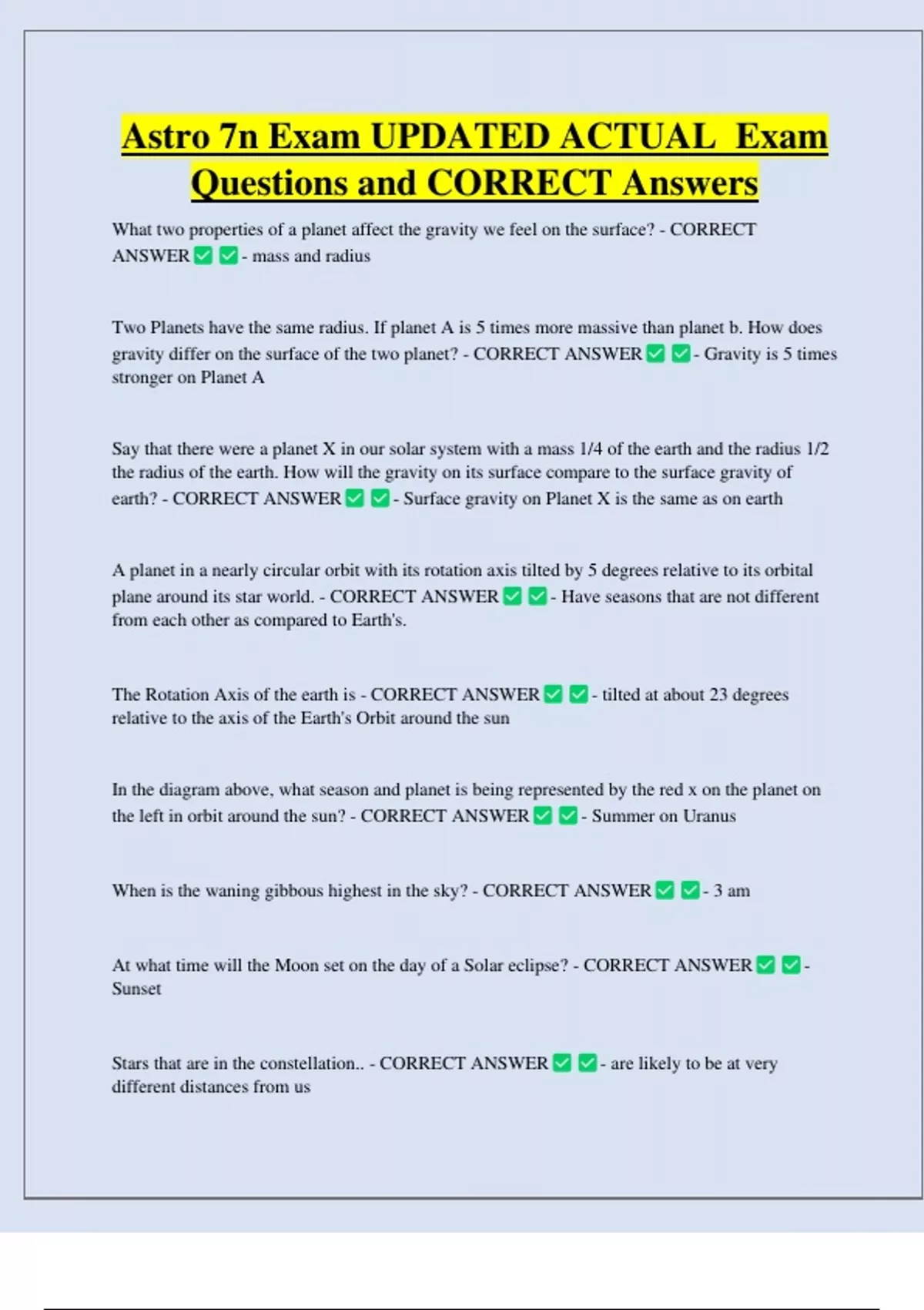 Astro 7n Exam UPDATED ACTUAL Exam Questions and CORRECT Answers