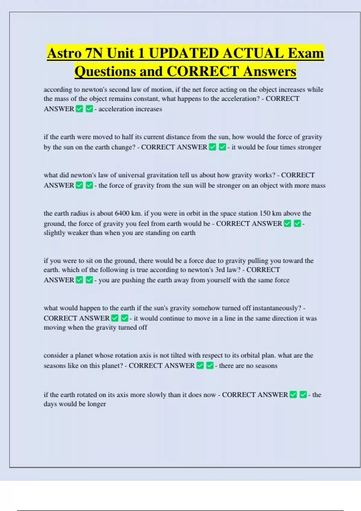 Astro 7N Unit 1 UPDATED ACTUAL Exam