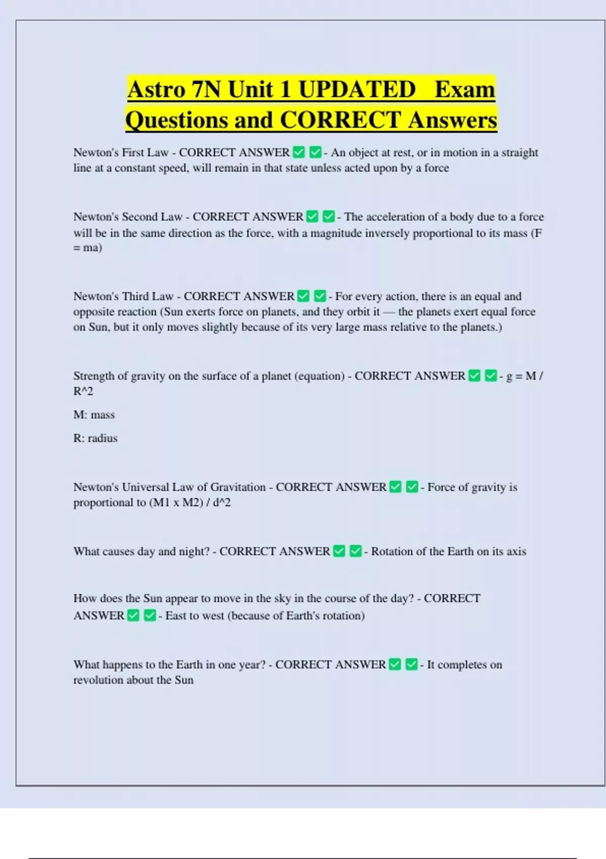 Questions and CORRECT Answers