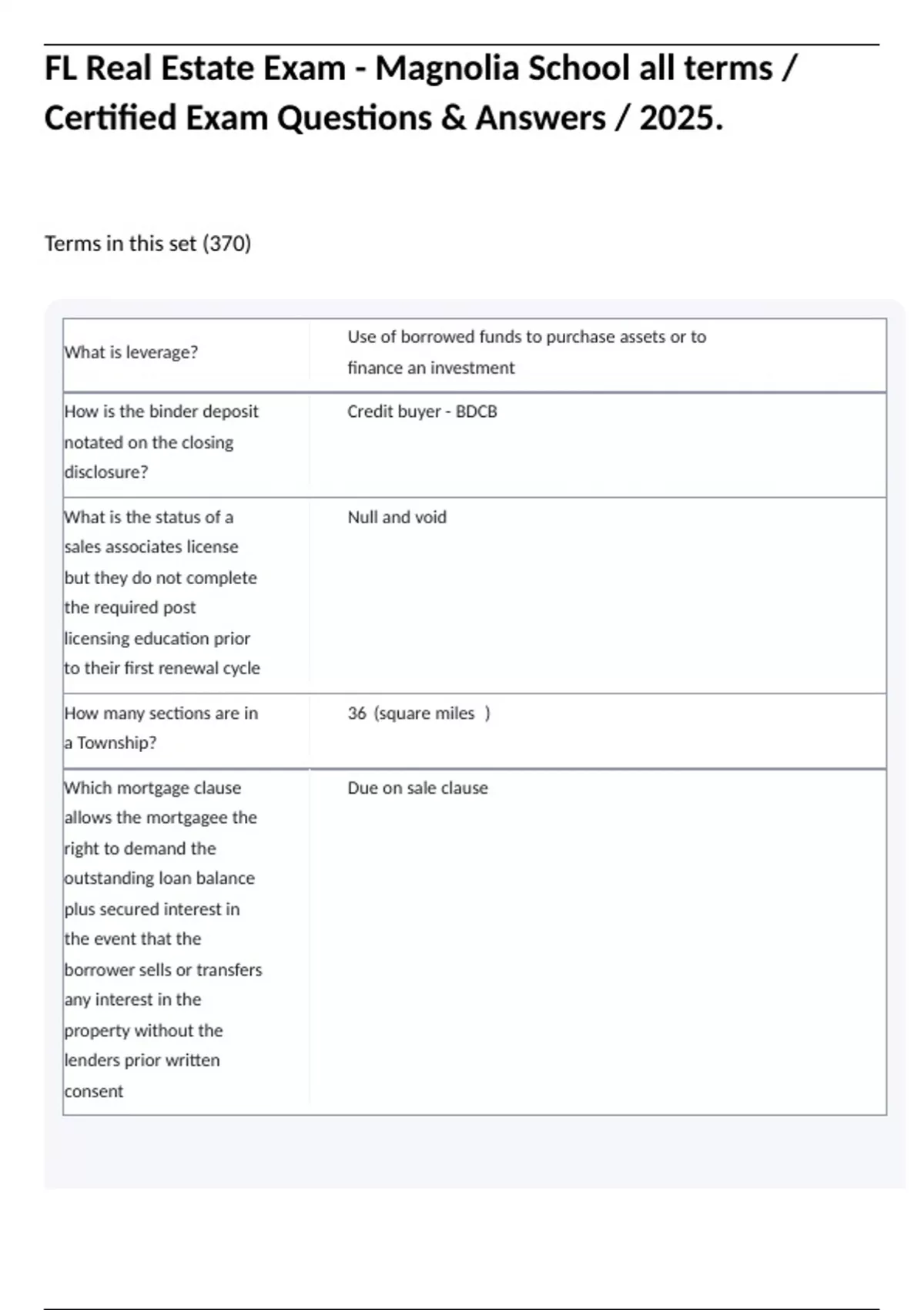 FL Real Estate Exam - Magnolia School all terms / Certified Exam Questions & Answers / 2025.