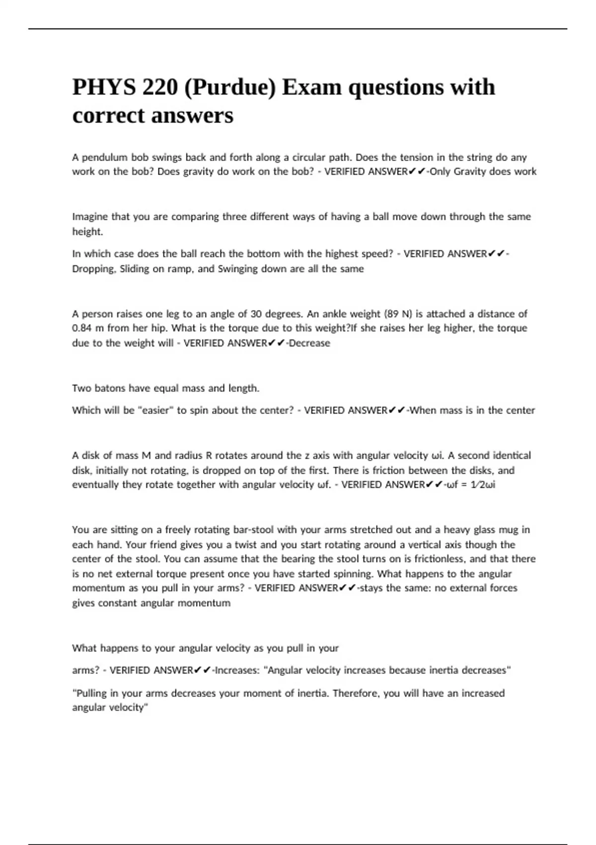 PHYS 220 (Purdue) Exam questions with