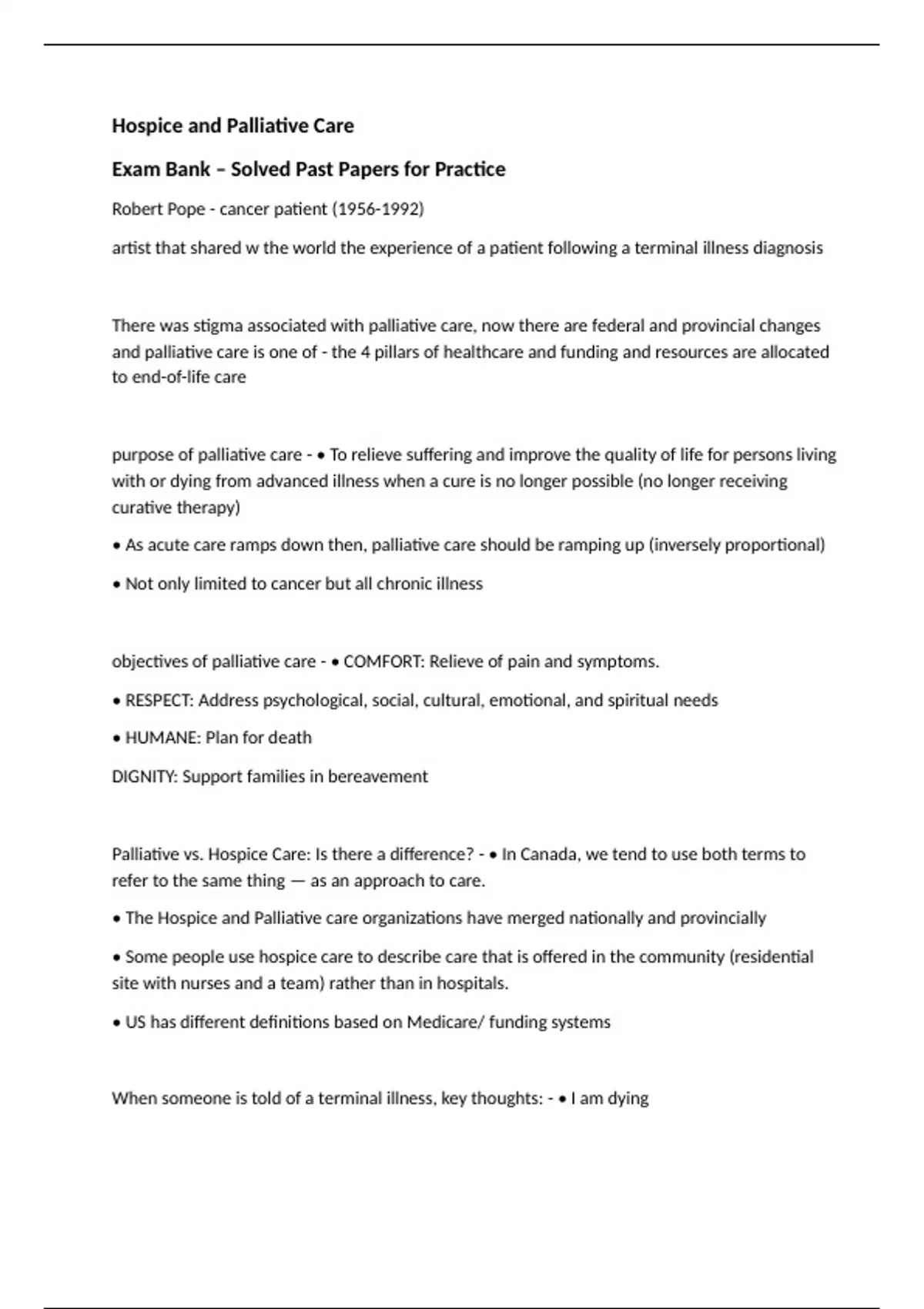 When someone is told of a terminal illness, key thoughts: - • I am dying