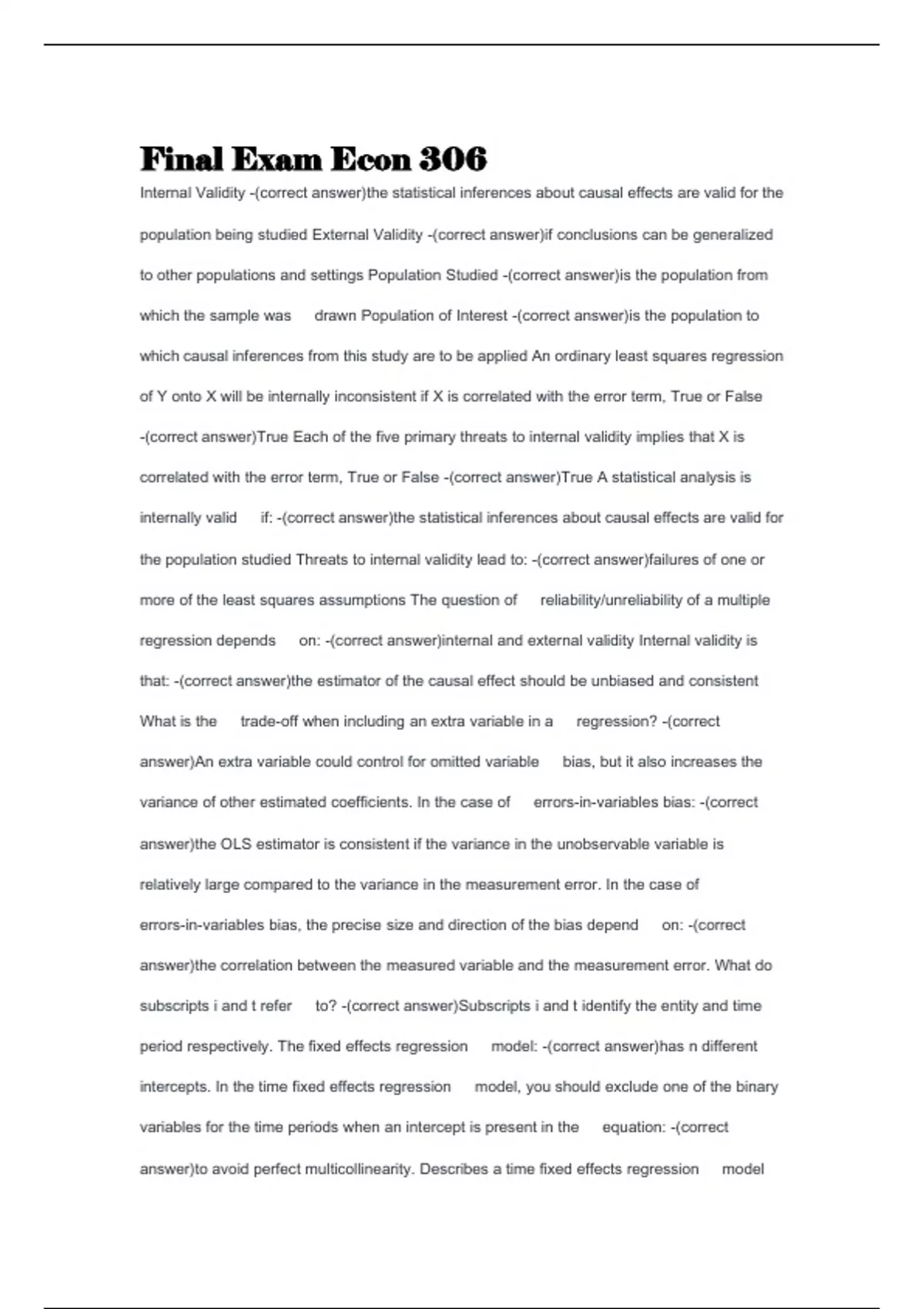internally valid if: -(correct answer)the statistical inferences about causal effects are valid for
