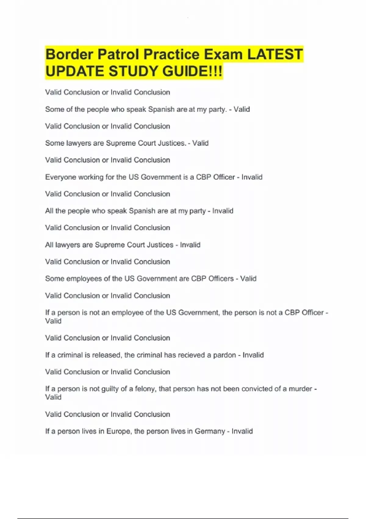 Border Patrol Practice Exam LATEST UPDATE STUDY GUIDE!! Border Patrol Practice Exam LATEST UPDATE STUDY GUIDE!!