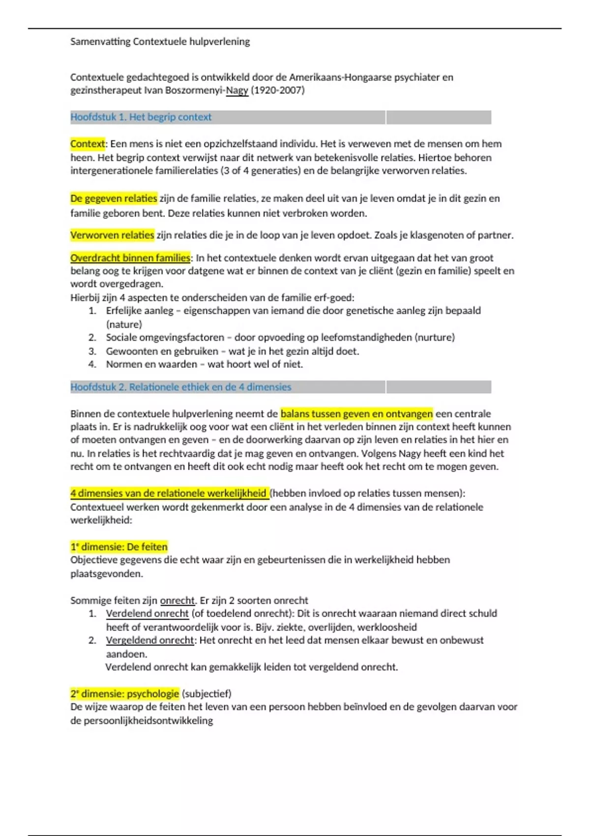 Samenvatting Contextuele hulpverlening door Van Ieperen (2e druk)