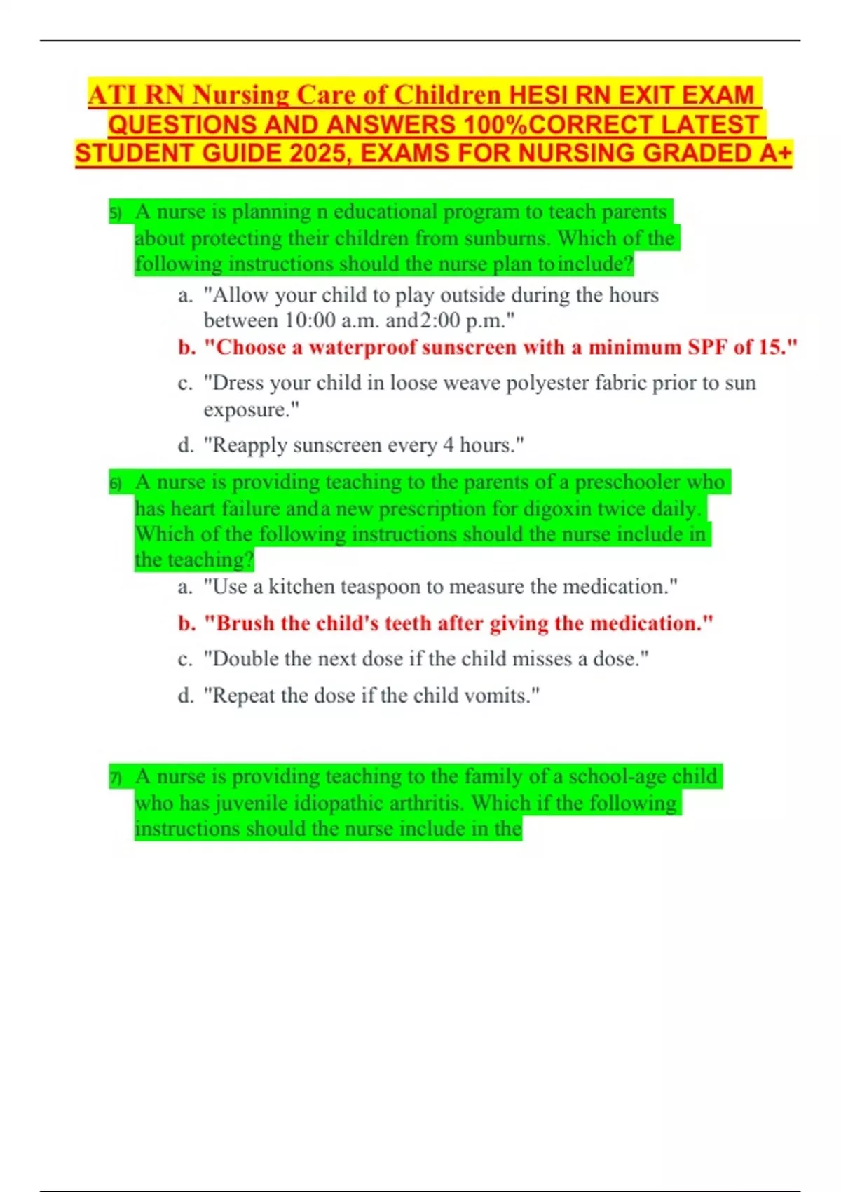ATI RN Nursing Care of Children HESI RN EXIT EXAM QUESTIONS AND ANSWERS 100% CORRECT LATEST STUDENT GUIDE 2025, EXAMS FOR NURSING GRADED A+
