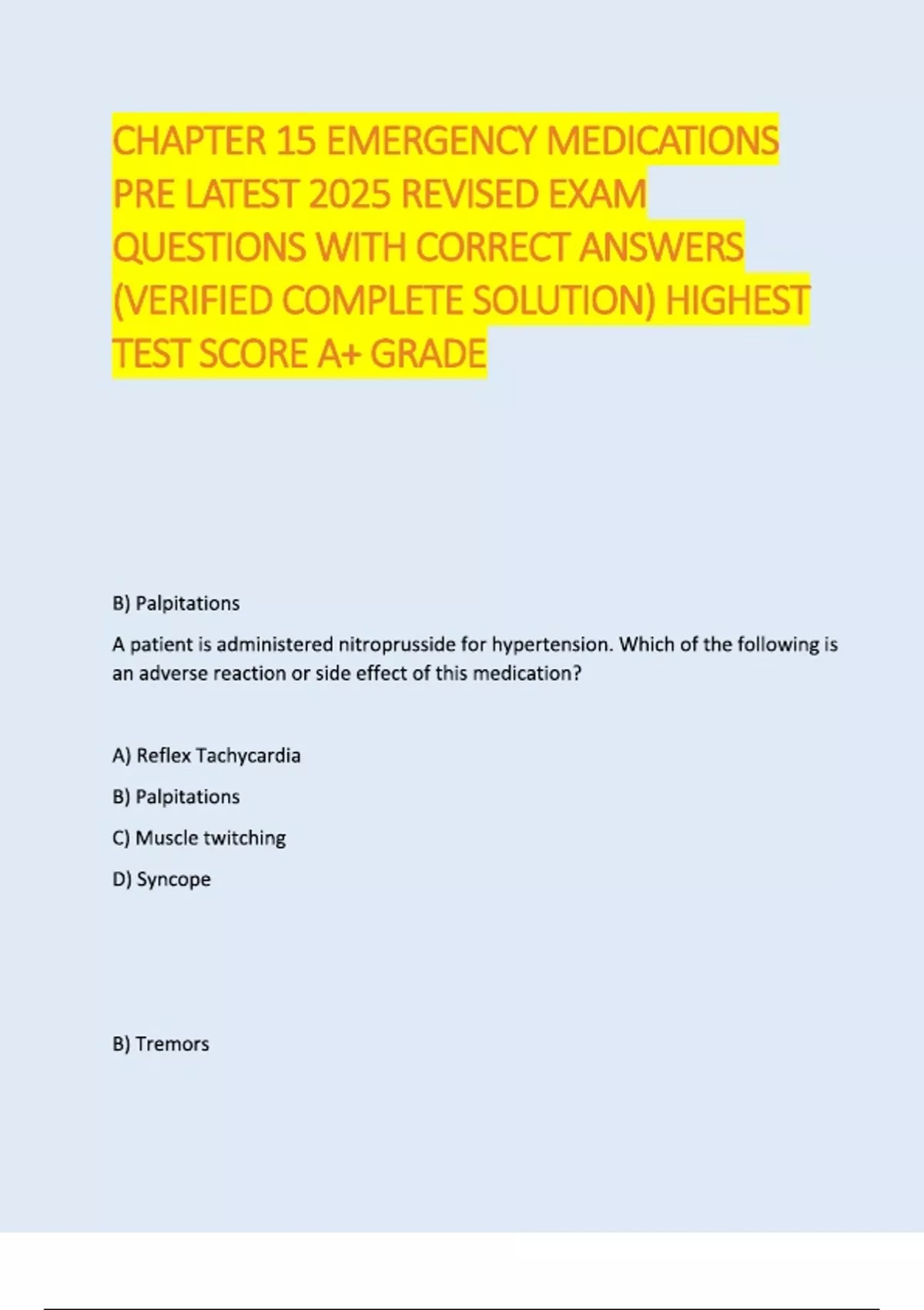 CHAPTER 15 EMERGENCY MEDICATIONS PRE LATEST 2025 REVISED EXAM