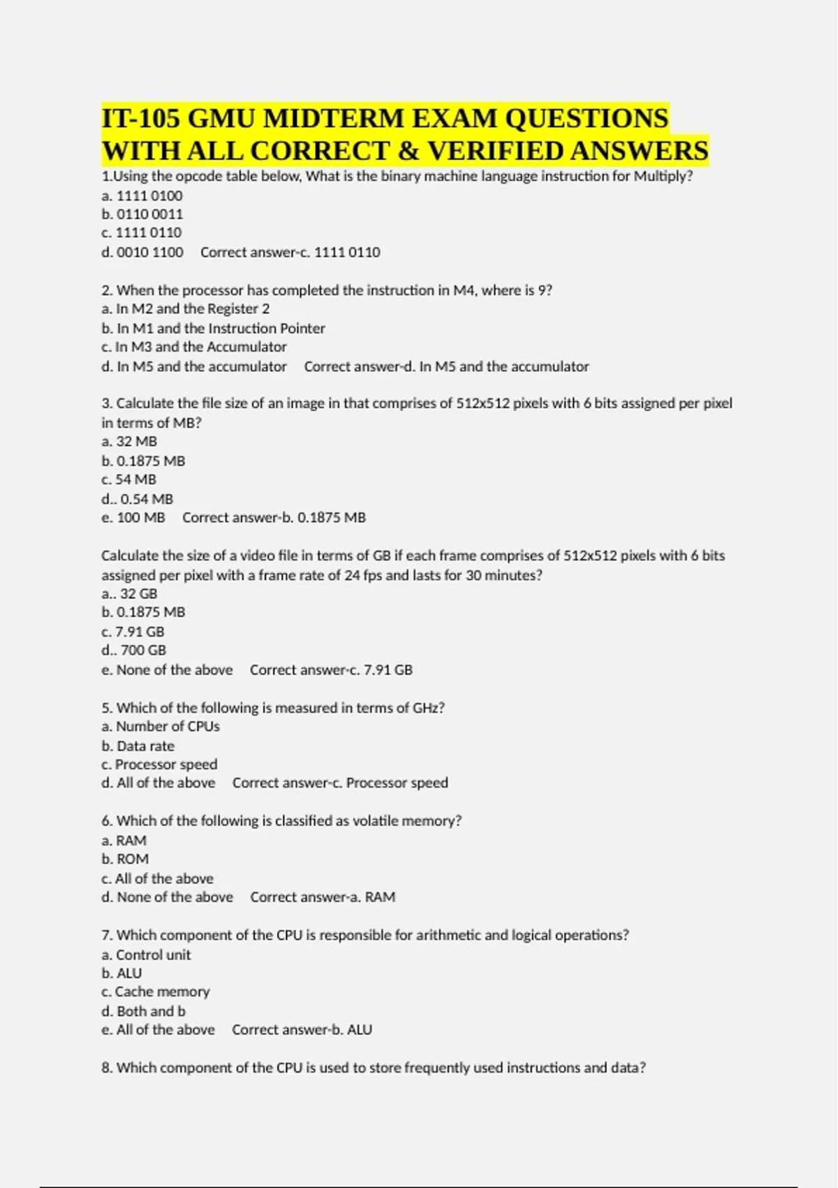 e. All of the above Correct answer-b. ALU