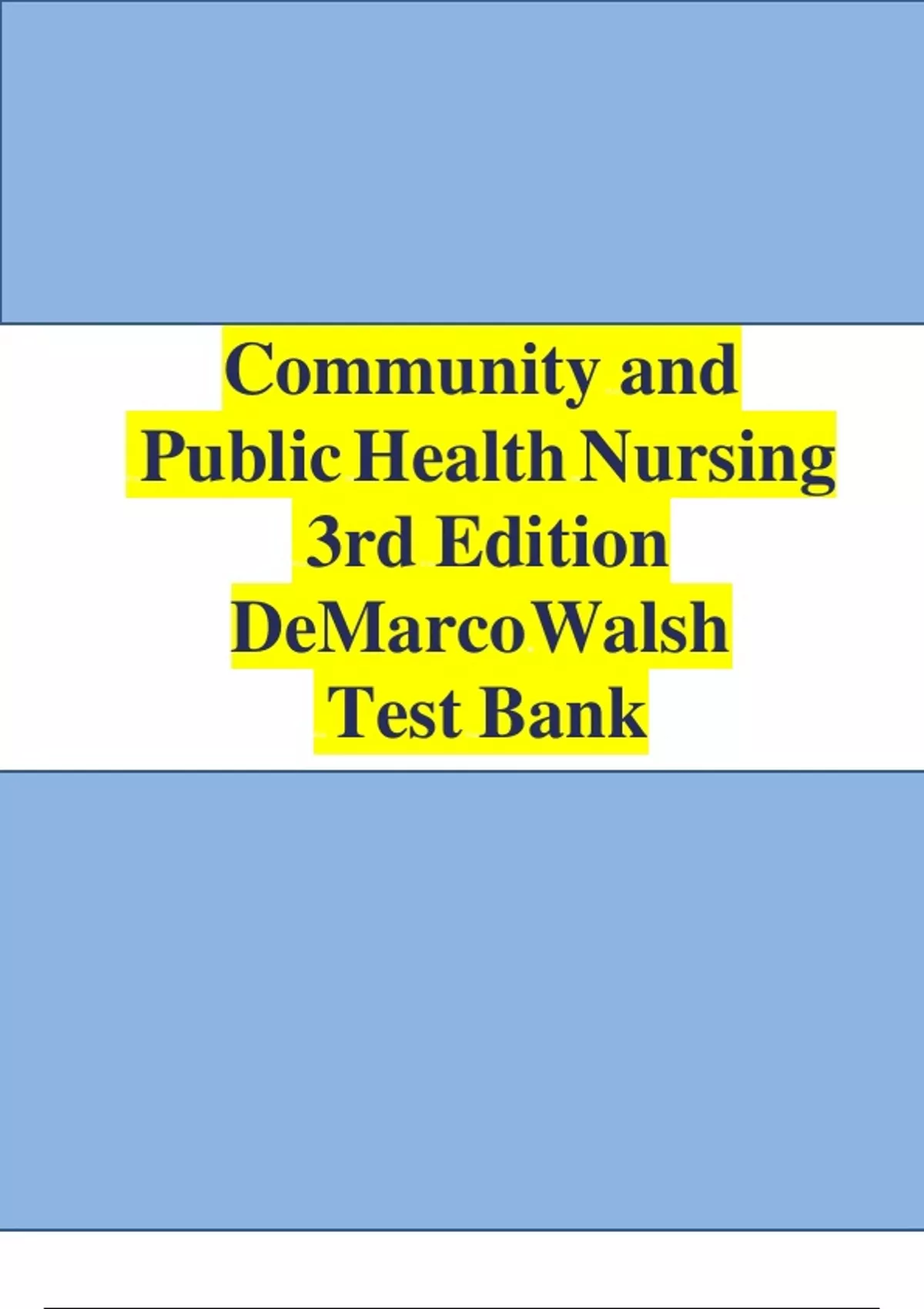 Test Bank For Community & Public Health Nursing 3rd Edition By Rosanna DeMarco; Judith Healey-Walsh ISBN;9781975111694 All Chapters Fully Covered,Complete Guide A+.